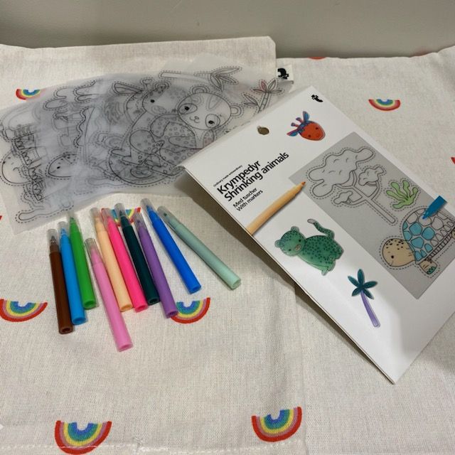 塗り絵のように色を塗ってオーブンで温めるとみるみる小さく!