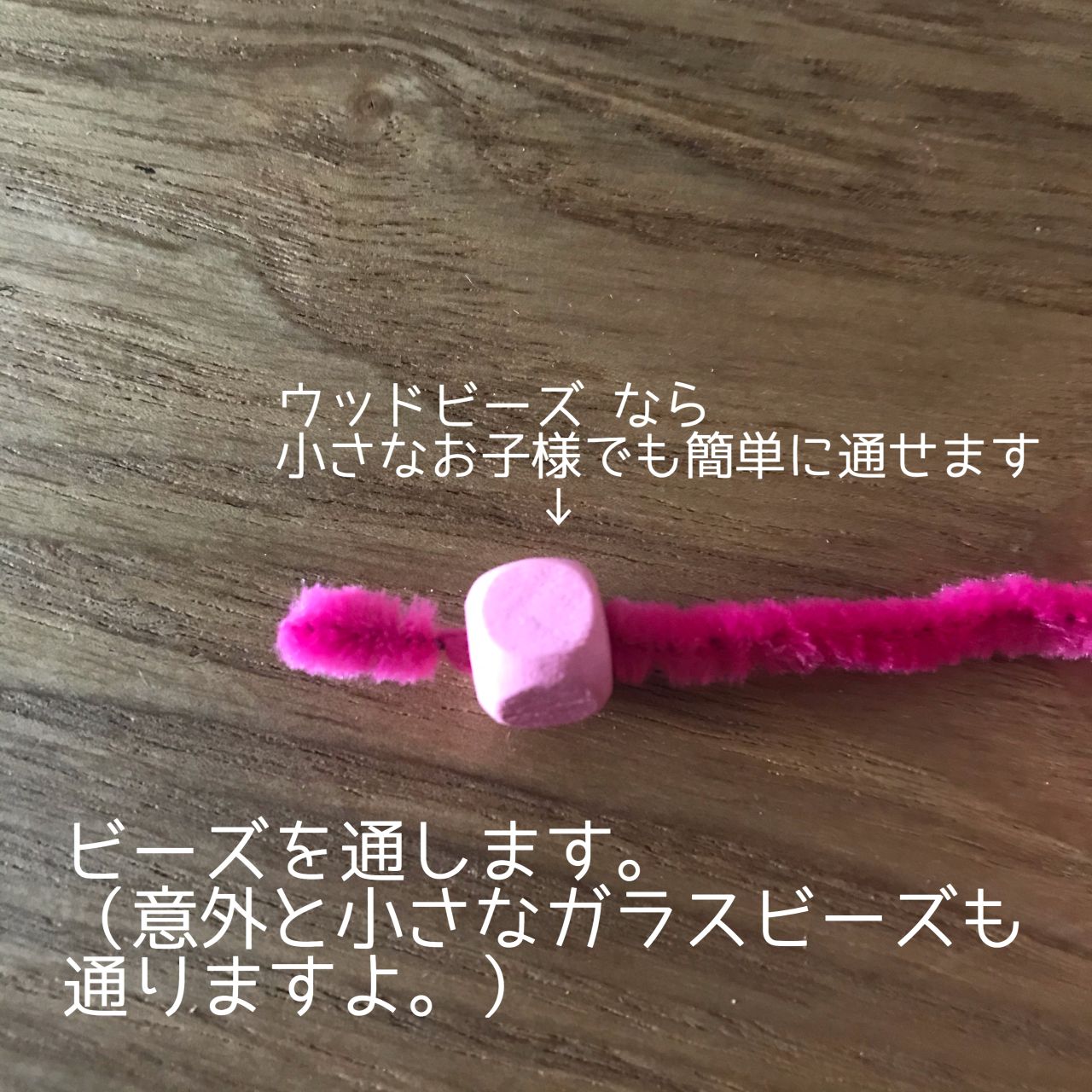 モールを使用するとビーズを通しやすくて小さなお子様でも作成出来ちゃいますよ!