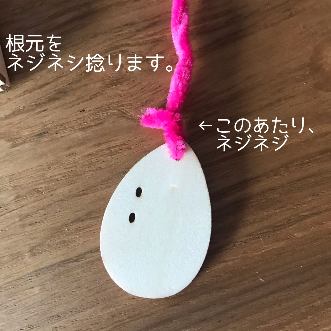 ④ 枝の両端に紐をつけて、完成!