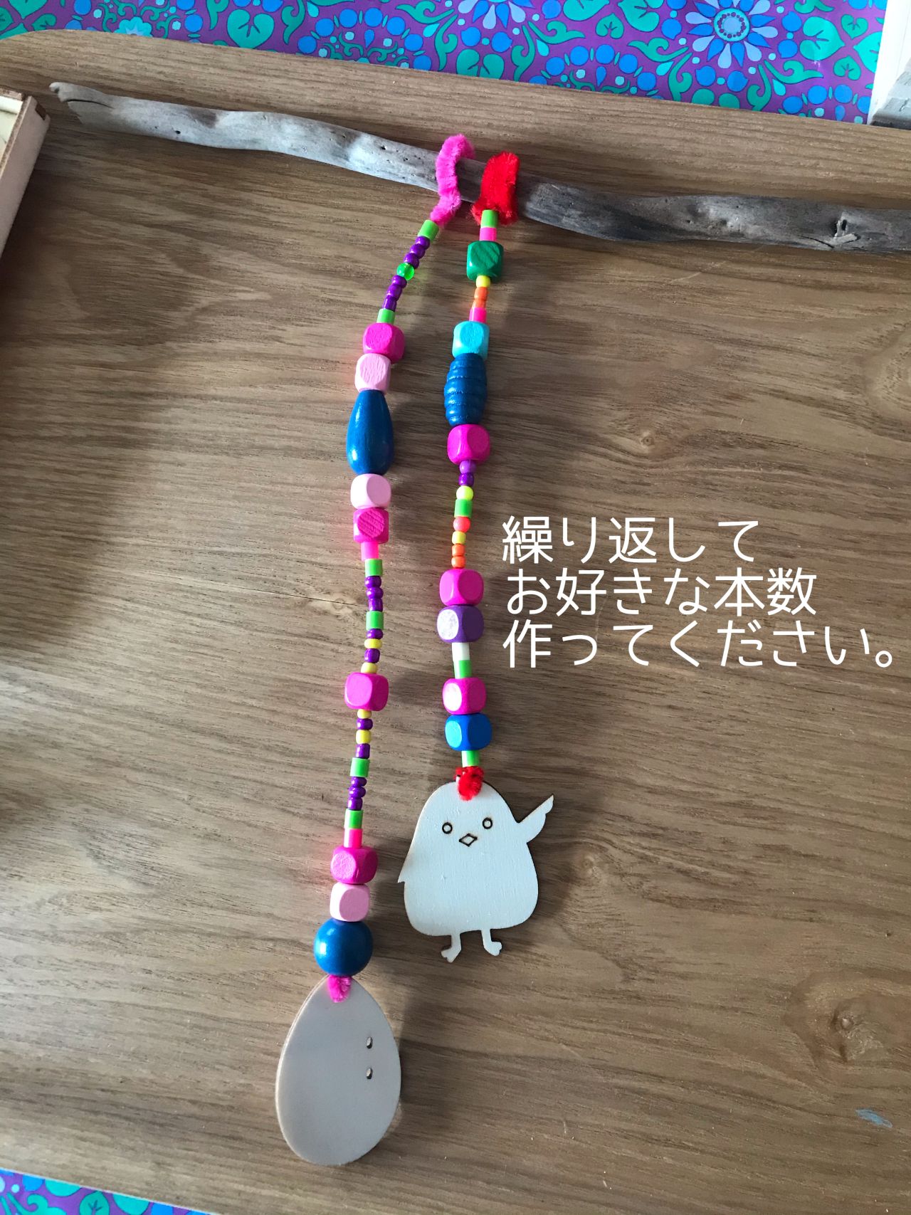 カラフルビーズをジャラジャラとさせて、思いっきりカラフルhappyなタペストリーを作っちゃいましょう♪