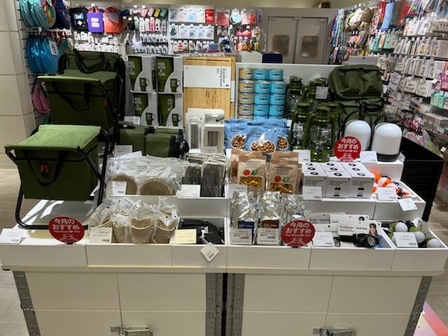 当店ではこのようにキャンプアイテムを盛りだくさん展開しておりますので