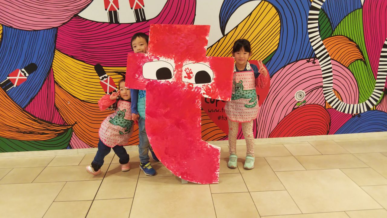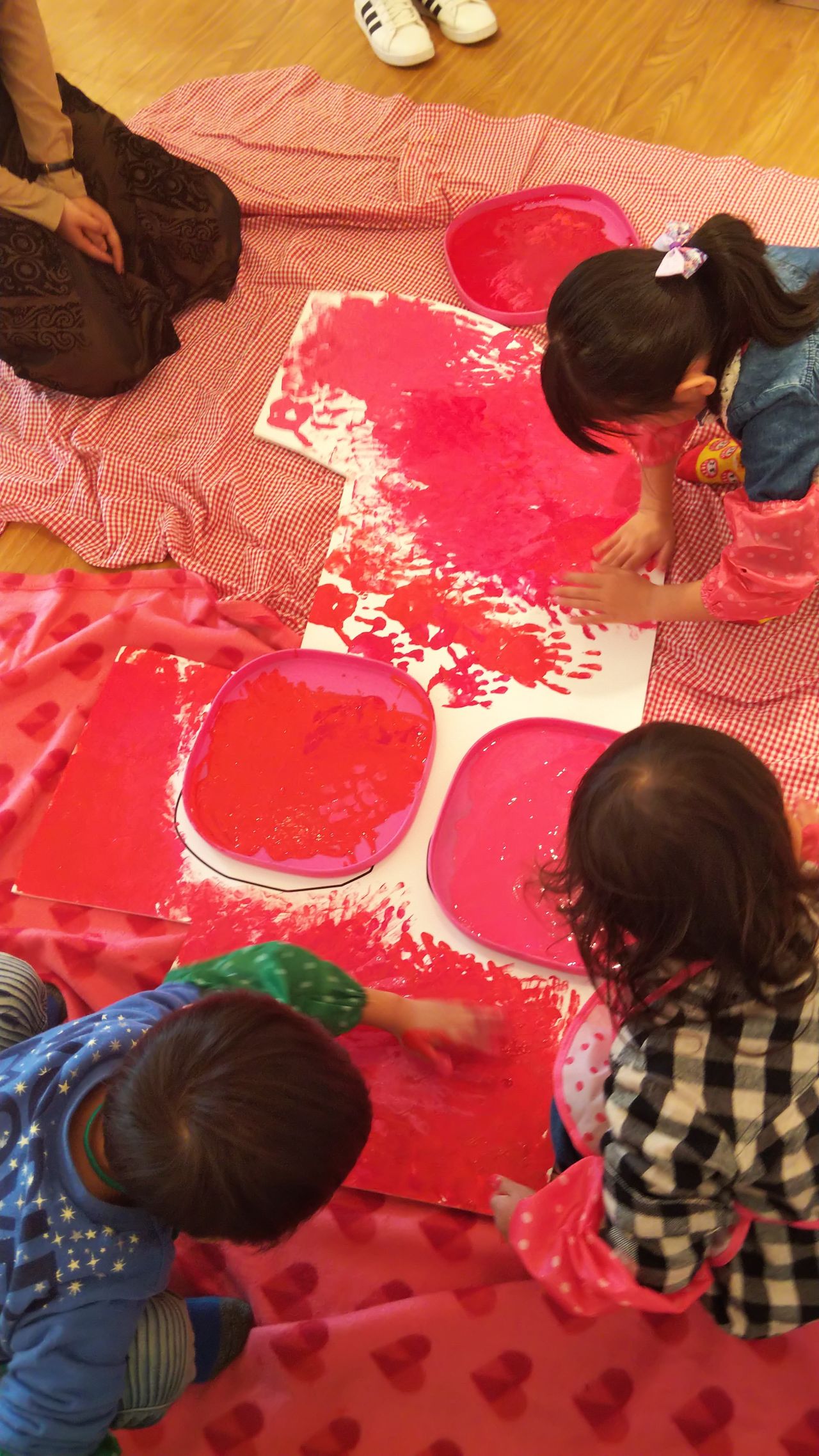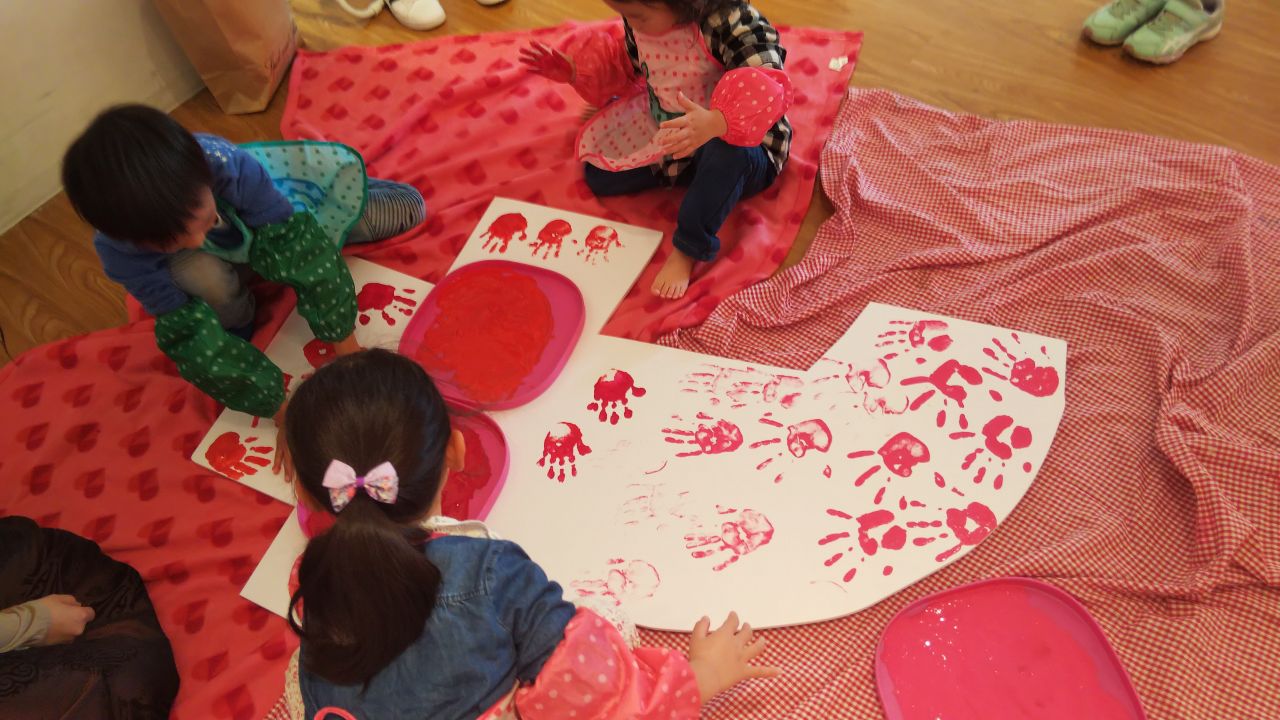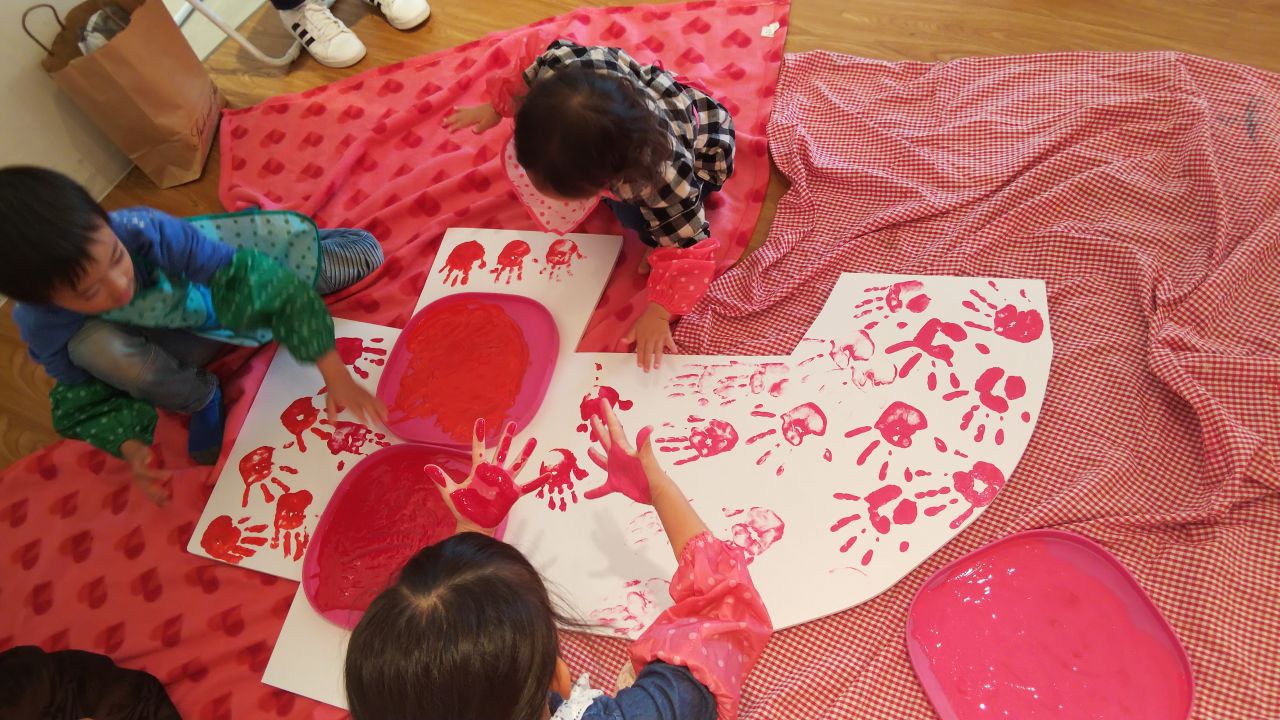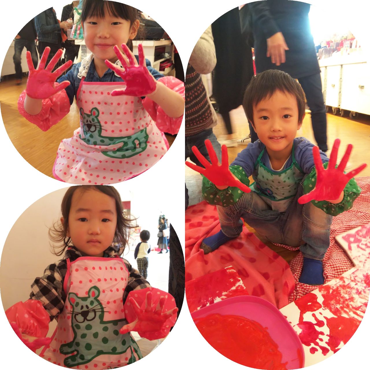 ハンドプリントで、Mr.tをみんなで赤色に!!