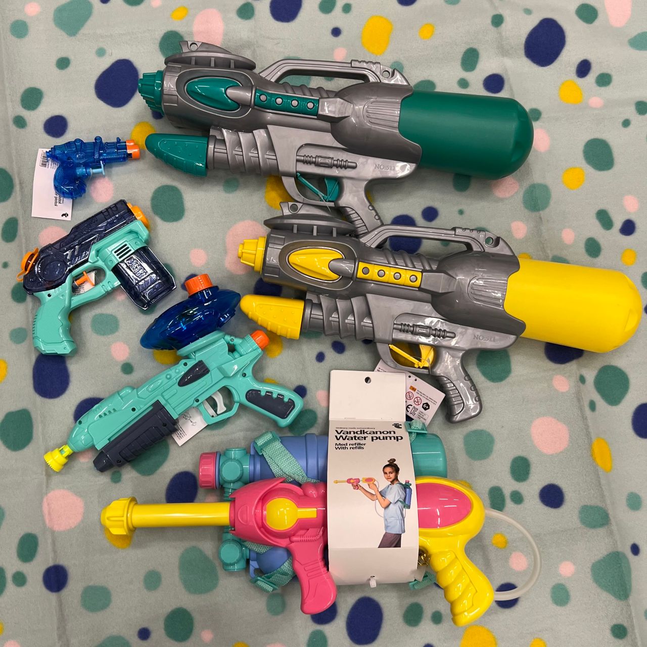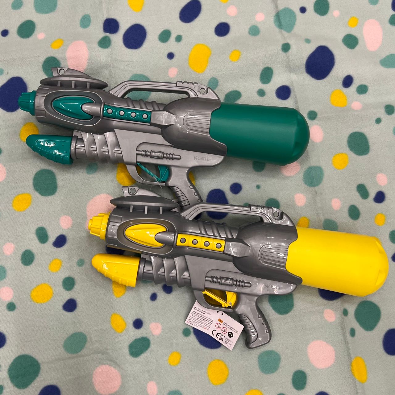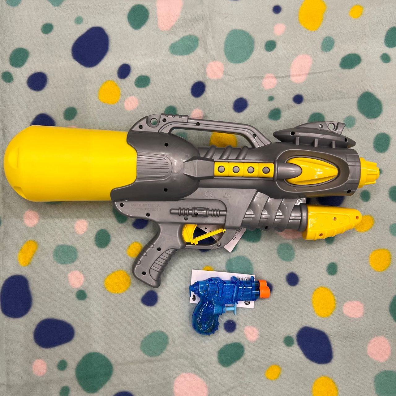 小さいウォーターガンと比べると大きさがよく分かりますね!