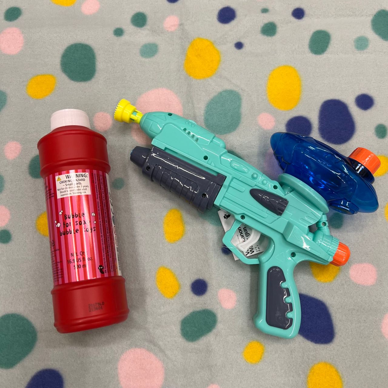 シャボン玉と水が一緒に出せるアイテムとなっております!