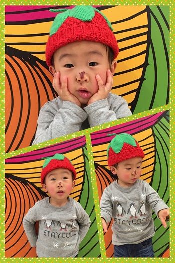 もう、超、かわいくないですか!イチゴの帽子!!!このキッズちゃん♡