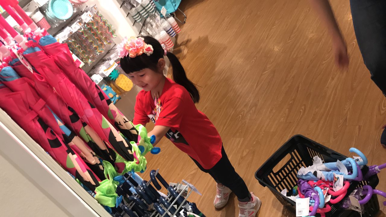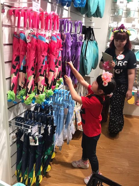 さきちゃんは店頭でキャンディーのサンプリング。