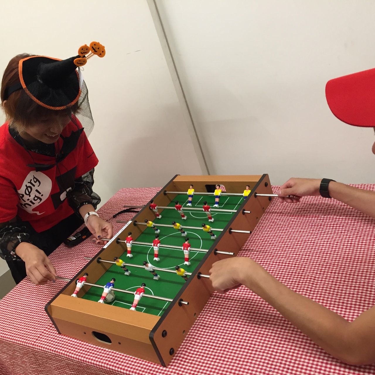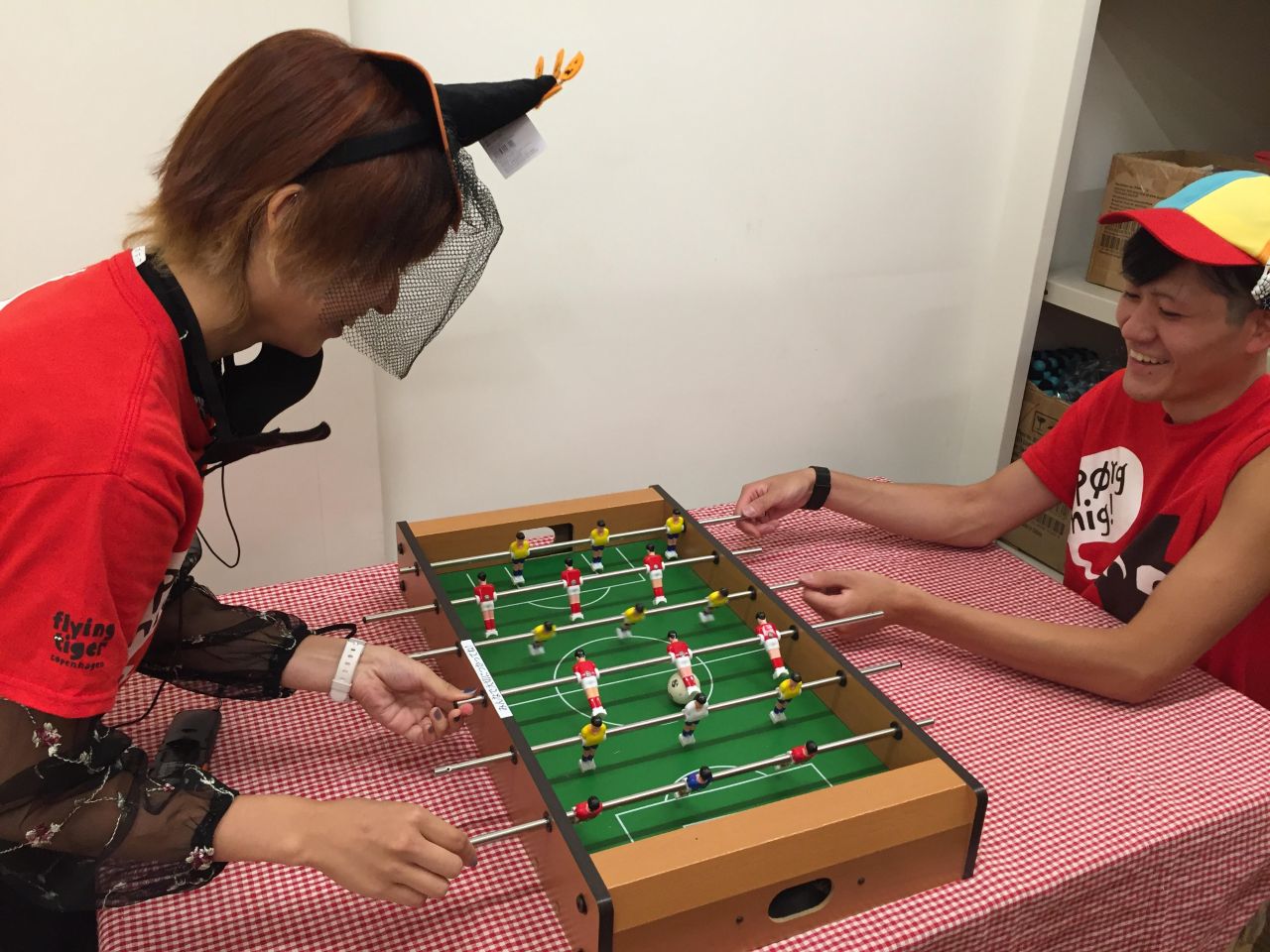 転がってきたボールをバーを動かしてゴールを守ったり、相手のゴールを目掛けてつなげていくゲーム
