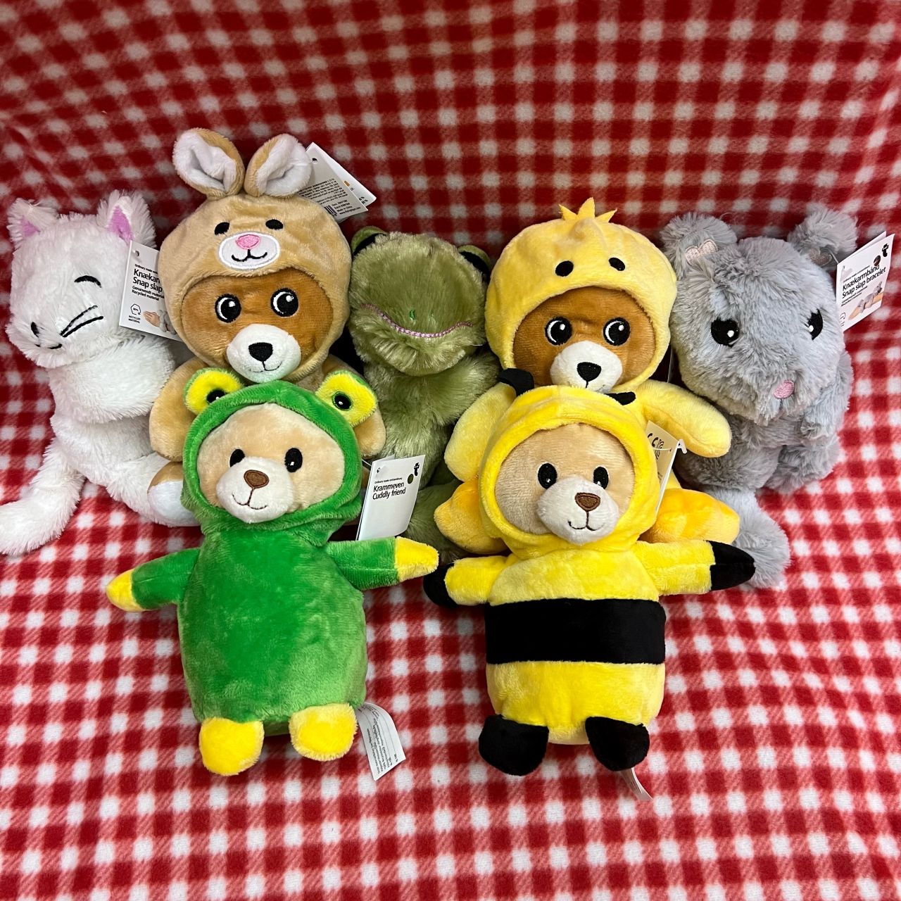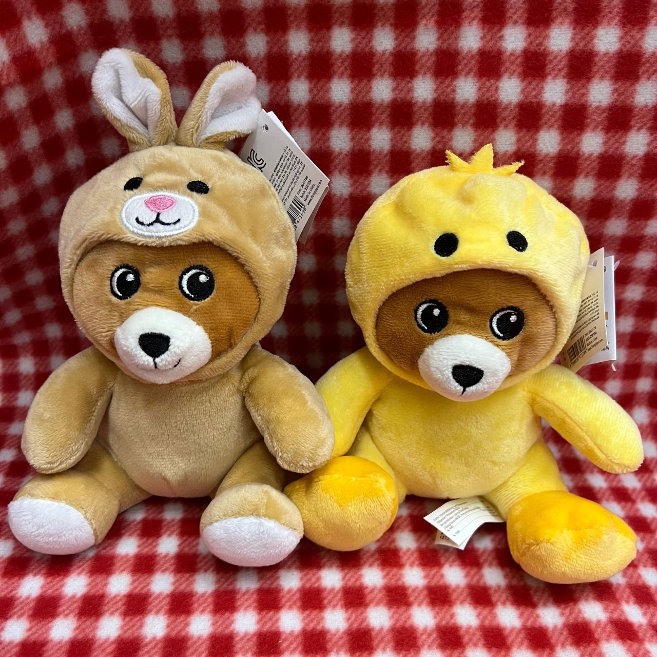 ヒヨコとウサギの着ぐるみを着たクマのぬいぐるみ!