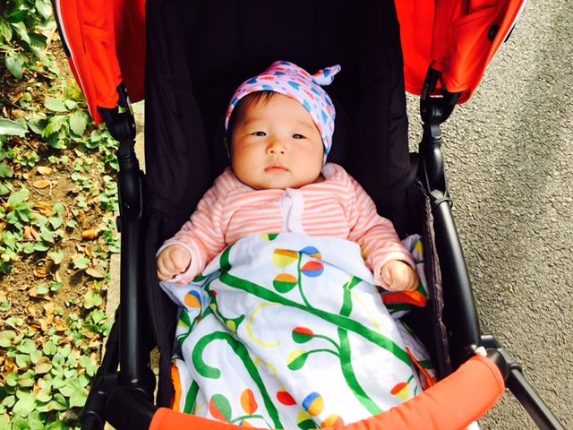 ママとお散歩に行くのが大好きな生後3ヶ月のひまりちゃん。
