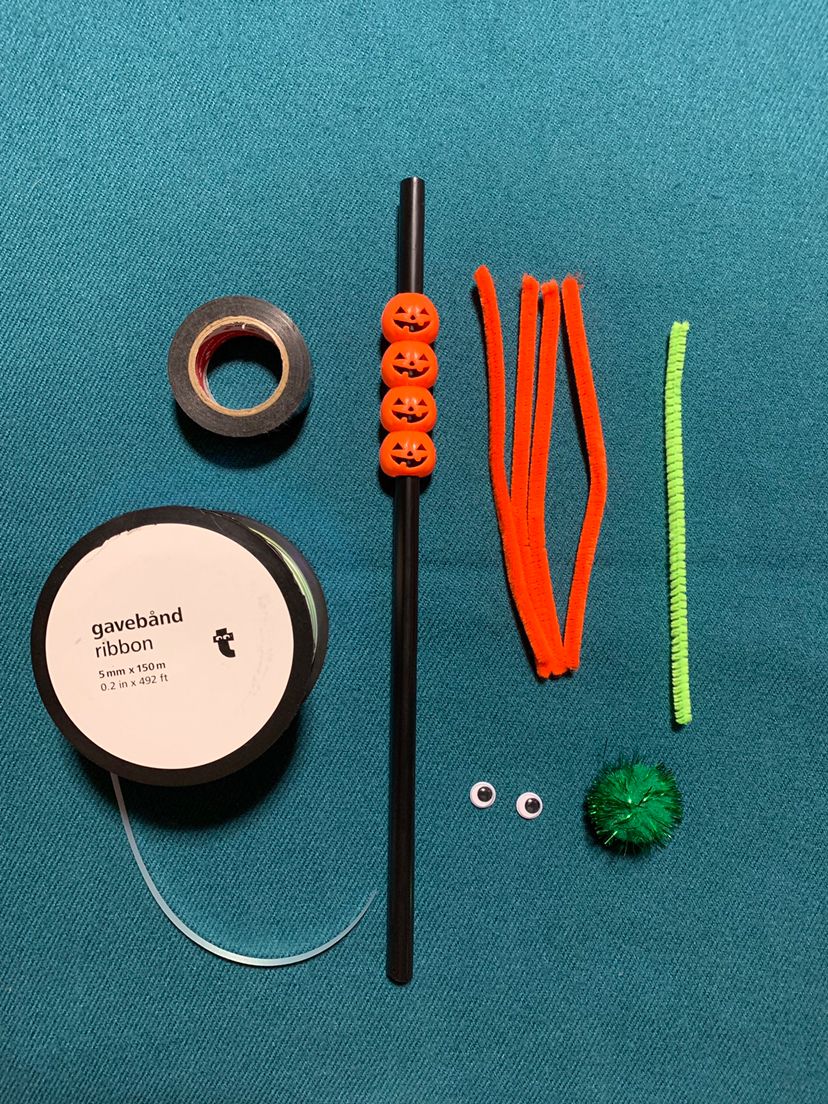 ⓸ ストローの先にビニールテープでリボン・モールを並べて巻き付けます。