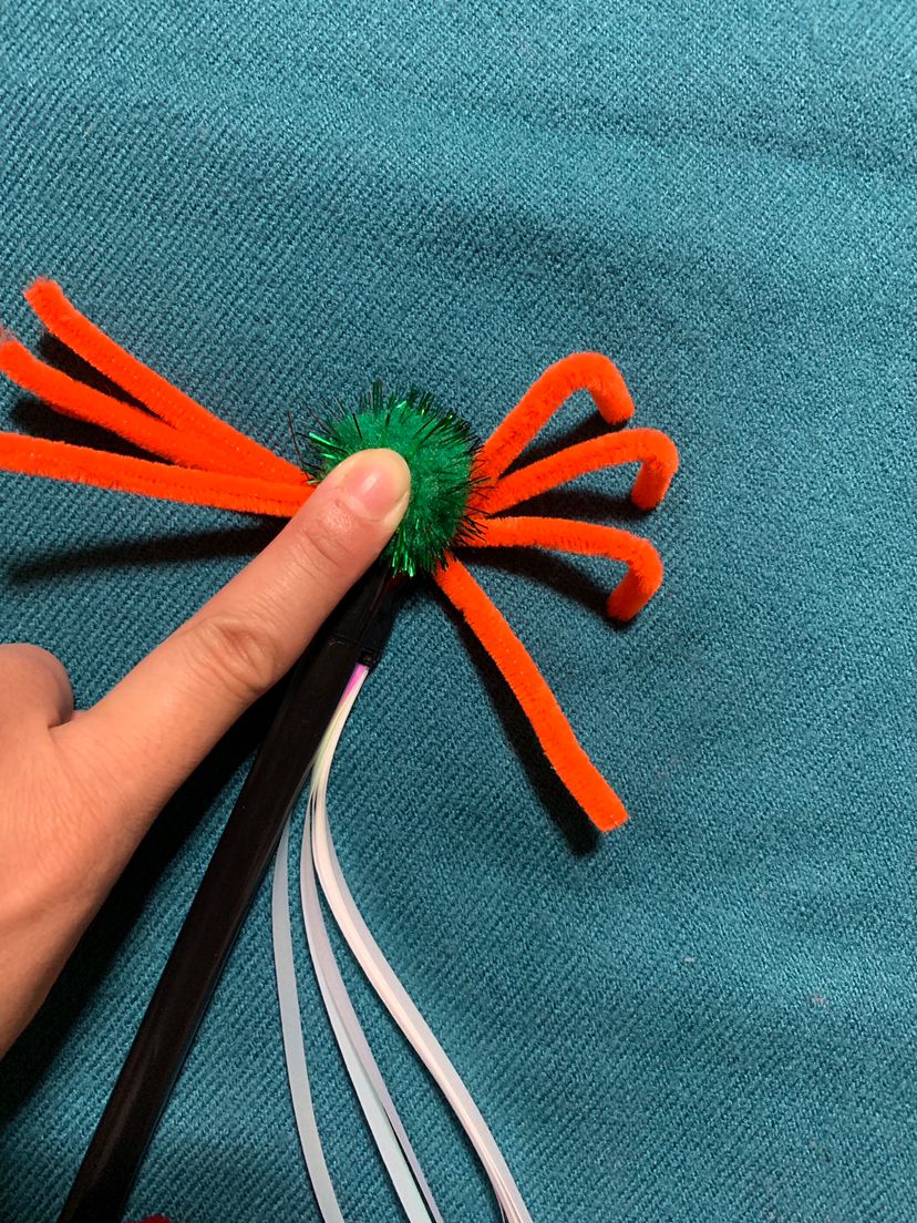③ 4本のねじった場所にポンポンを通したモールをねじって固定します。