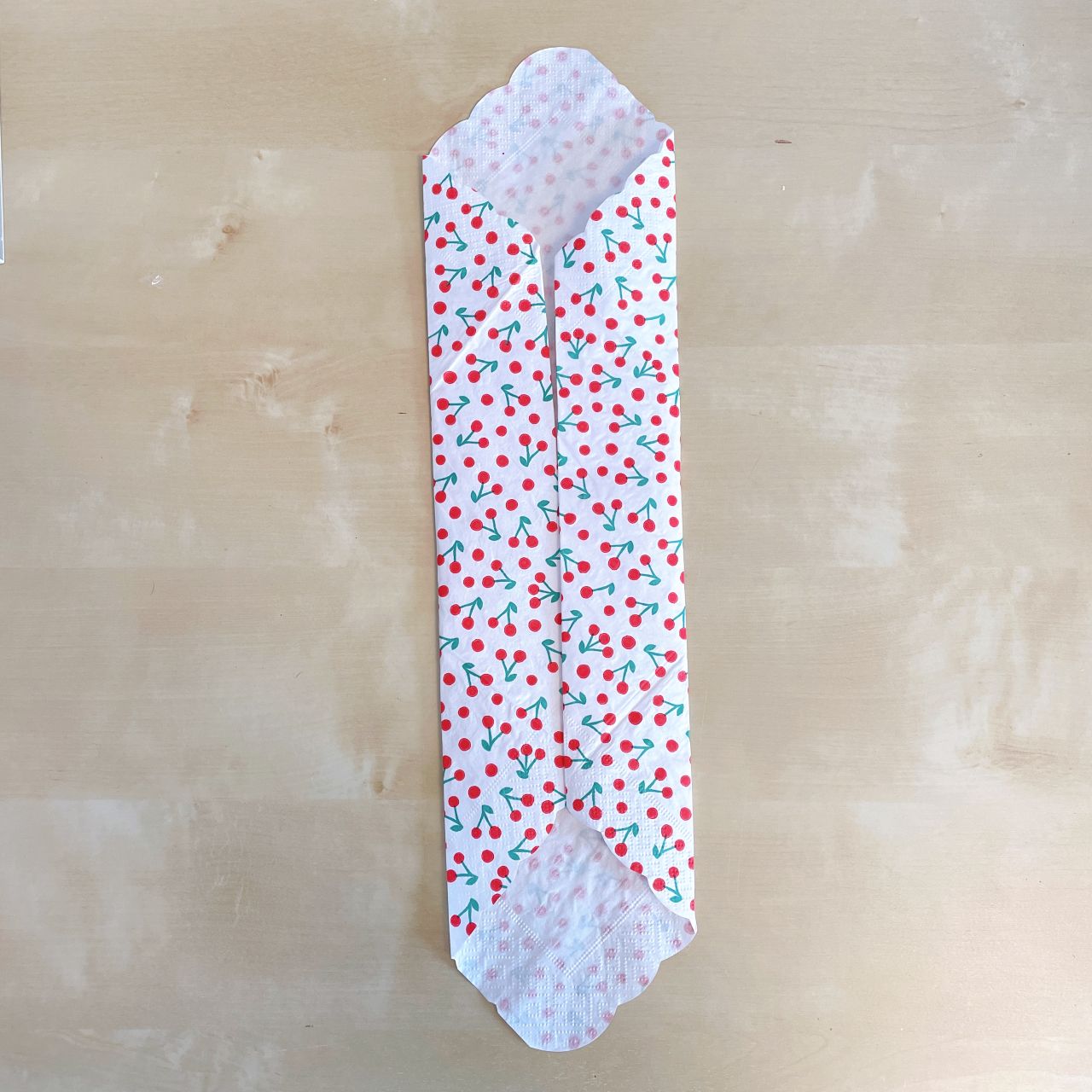 ○ペーパーナプキン(ハンカチやキッチンクロスでつくってもかわいいですよ!)