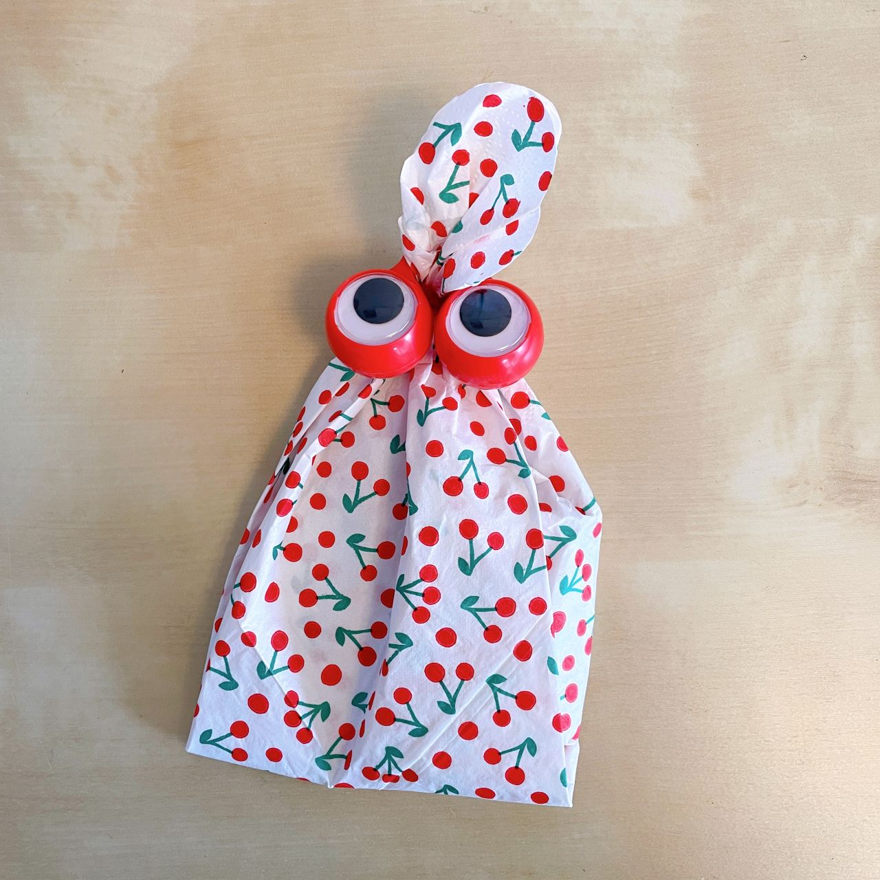 今回はフライングタイガーで売っているおもちゃ「フィンガーアイ」でとめています!
