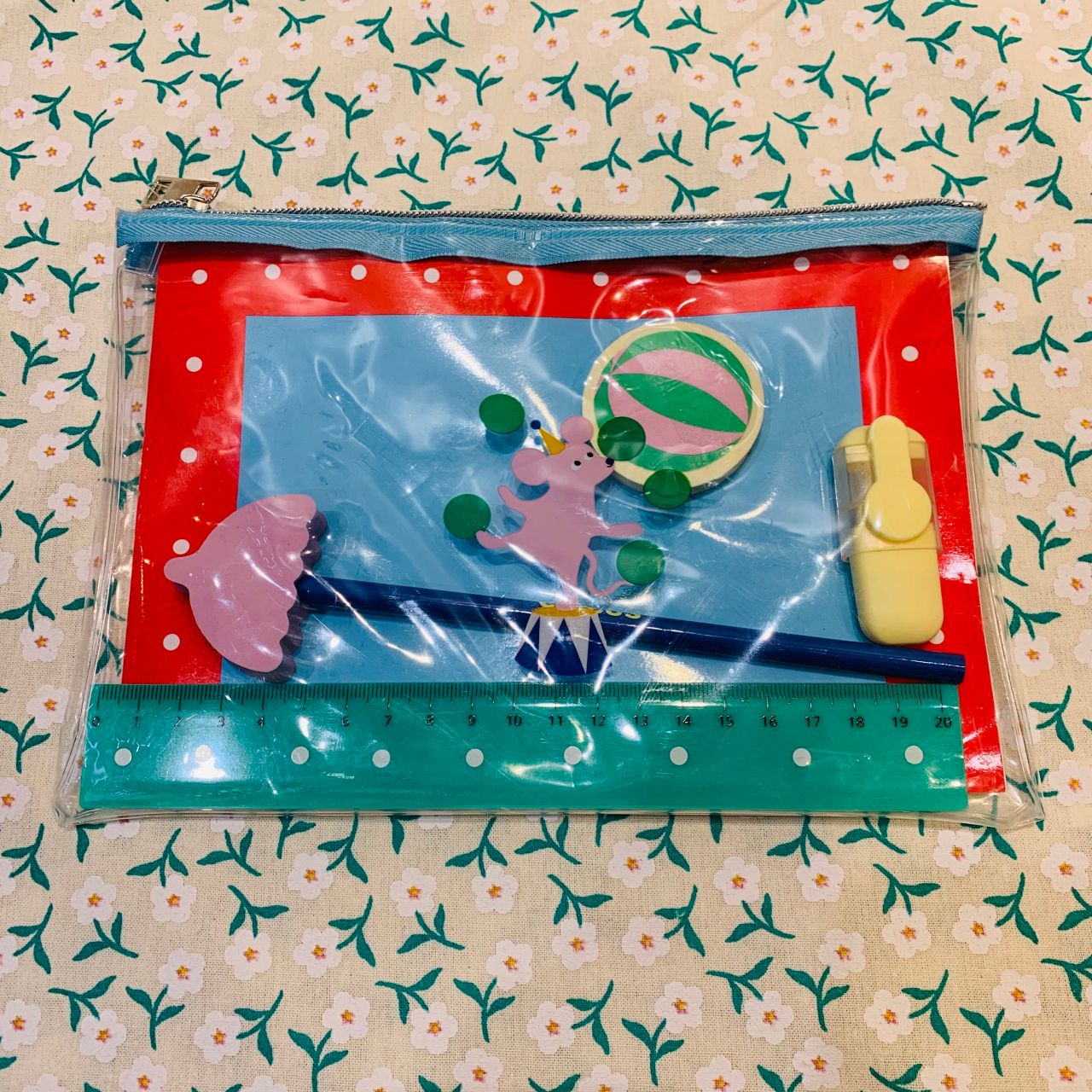 ペンポーチ、メモパッド、鉛筆、消しゴム、定規、マーカーがセットになった便利なアイテムです!