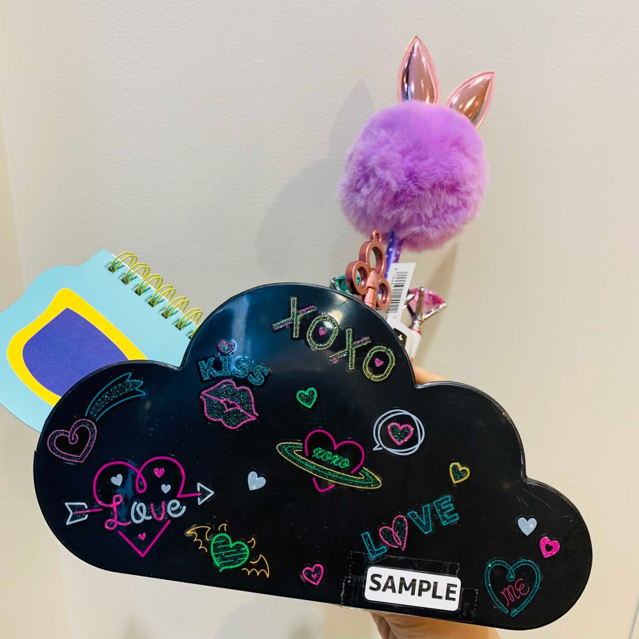 ブラックのペンホルダーにネオンライト風のステッカー (税込¥165)をペタペタ貼るというキュートなアレンジ術を公開してくれました……!