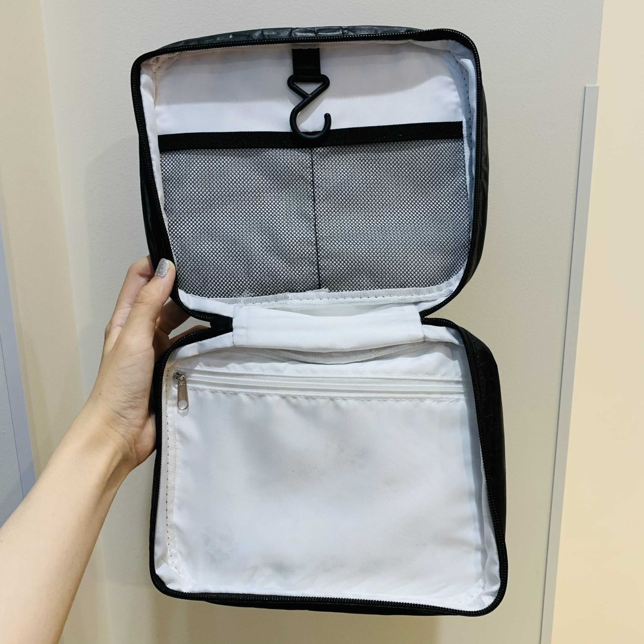 中はフックにファスナー、メッシュ素材のポケットも付いています!