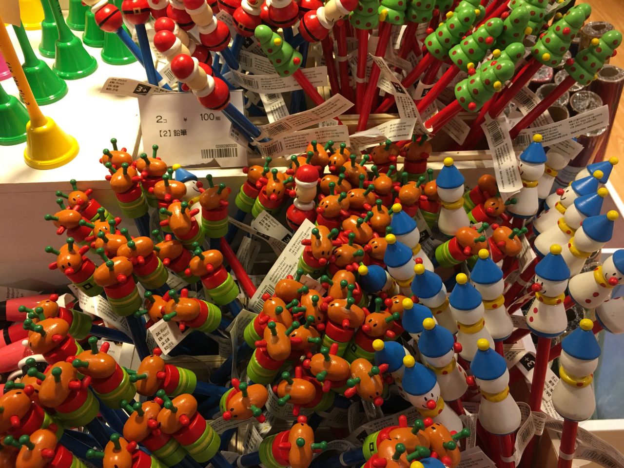 かわいい木製のクリスマスモチーフのフィギュアがついた鉛筆です。全4種類。