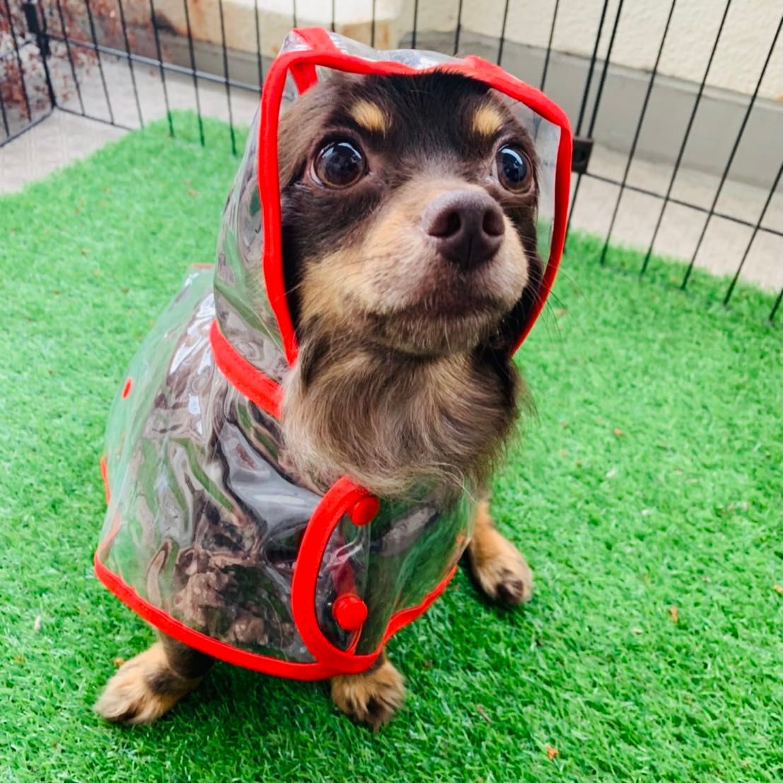 チワワとダックスフンドのミックス犬で、着用サイズはMediumとなっています!