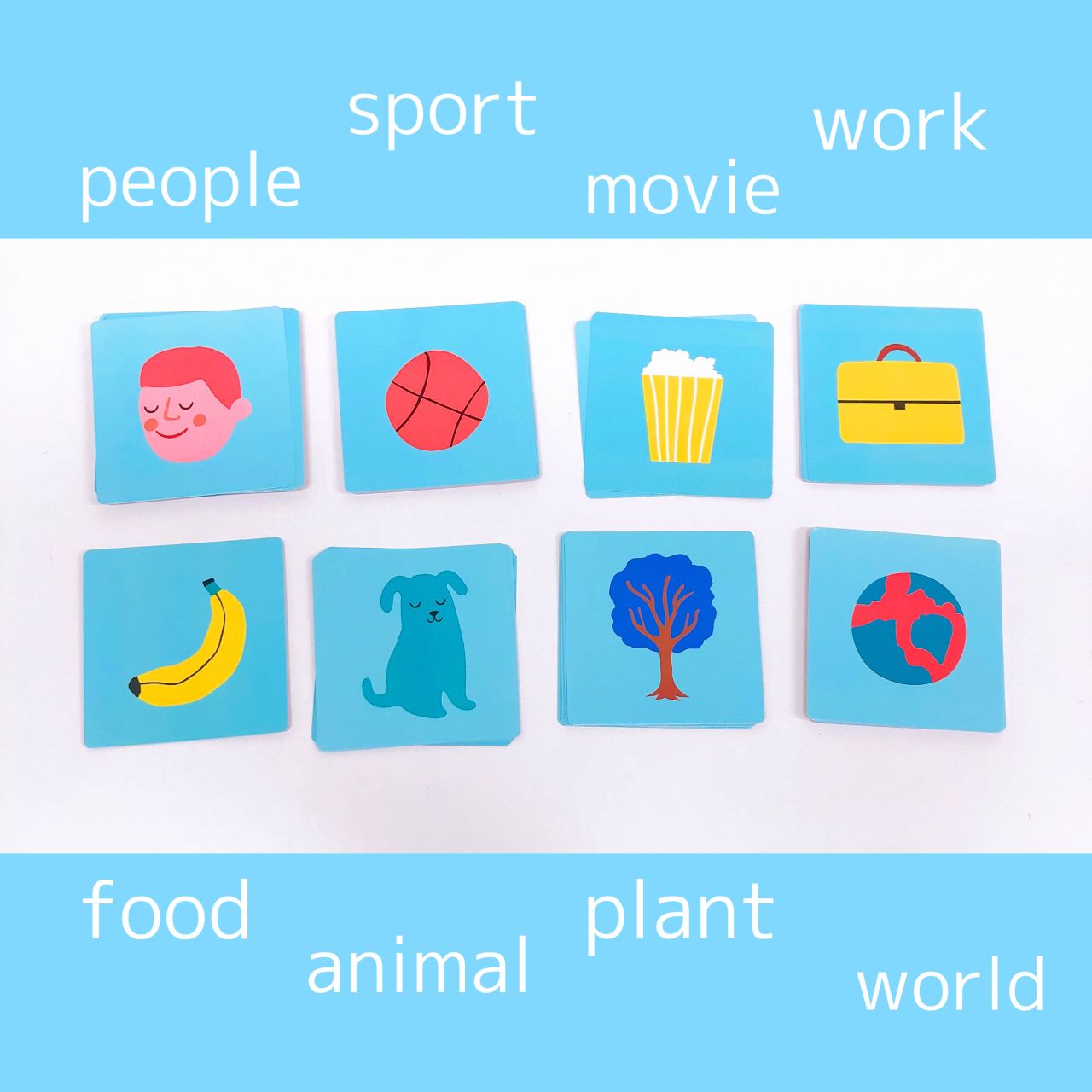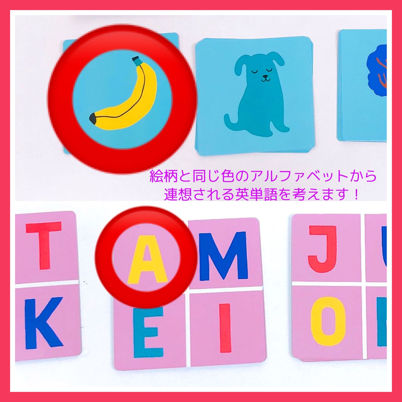 ④カードの組み合わせから、一番早く英語の言葉を考えたプレイヤーがそのカードをもらえます。