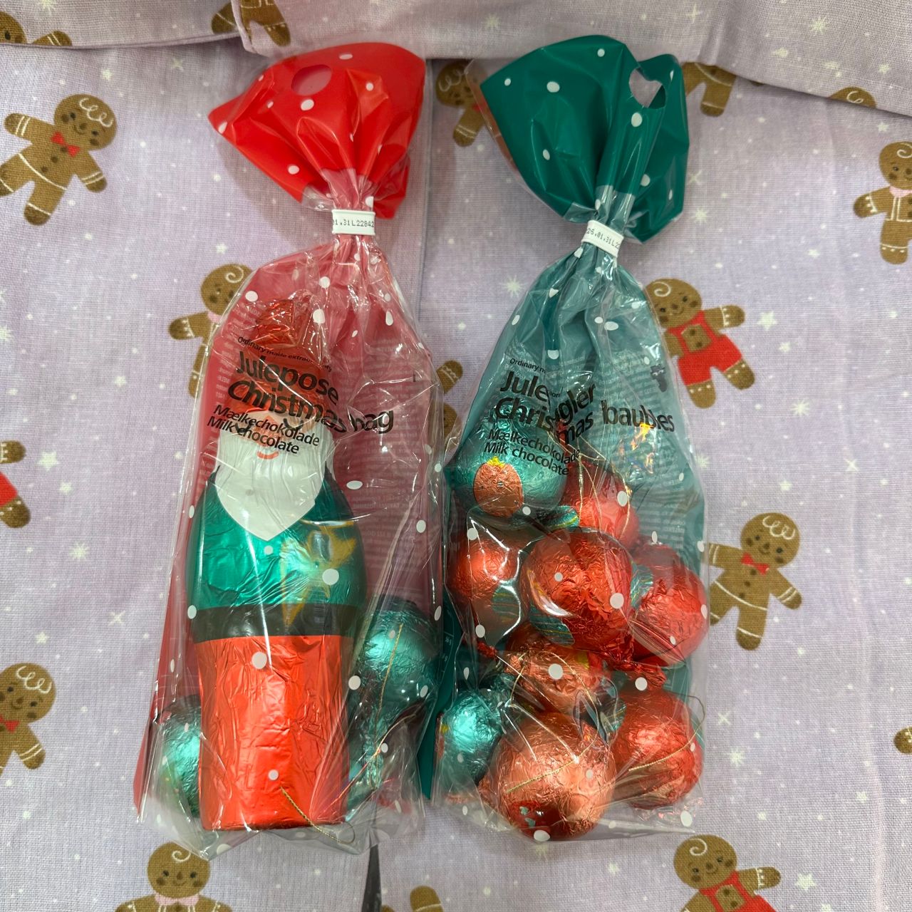 ②チョコレート(サンタ)、チョコレート(オーナメント) 各種 ¥600(税込¥648)