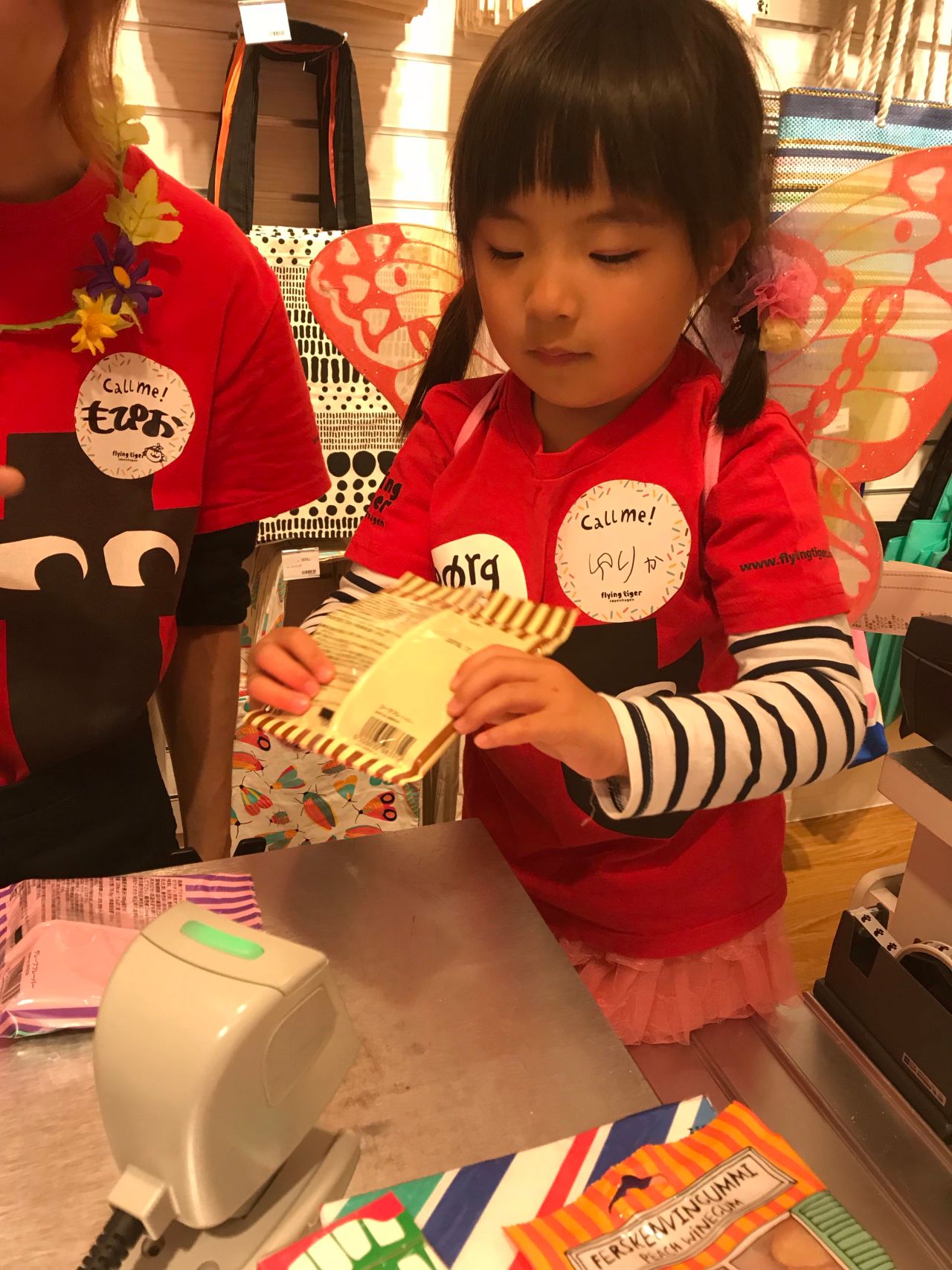 初めはバーコードを探すのと、ピッと通すのが難しかったようですが、2回目からスムーズに通すことが出来て慣れてきた様子。めっちゃ集中していました!!