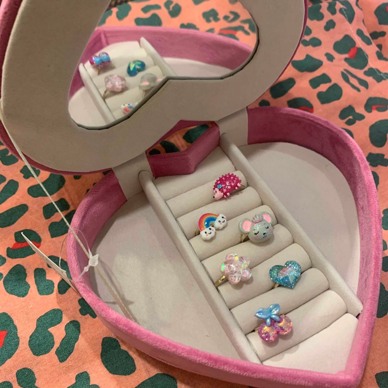 こんな風に指輪もたくさんはいりますよ~!ちなみにこのかわいい指輪もフライングタイガーにおいてあるんです^^