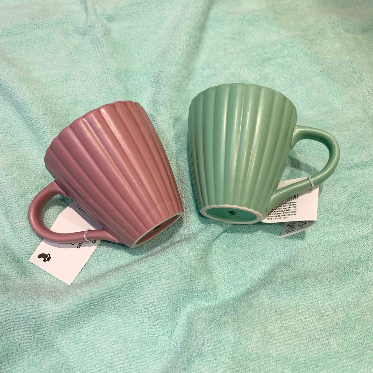 食卓を鮮やかにしてくれる可愛いマグ。ピンク、みどり、白がございます♪♪