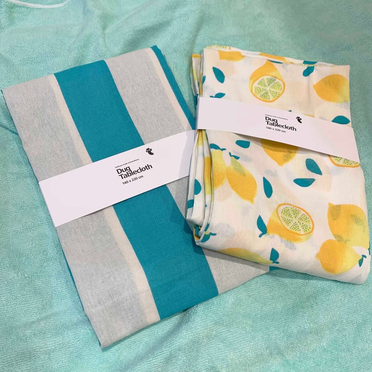 夏を感じられるレモン柄とストライプ柄のテーブルクロス!テーブルに広げるだけであっという間に夏仕様に!!