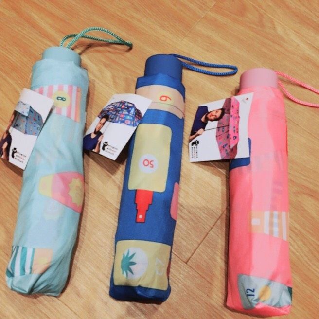サンオイルの絵が可愛いポップな柄の折り畳み傘です!