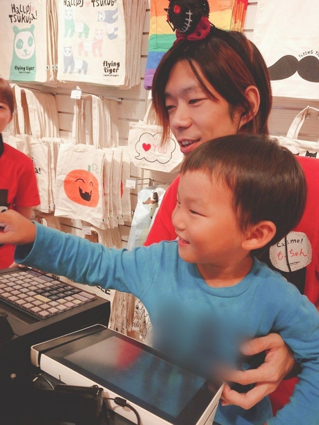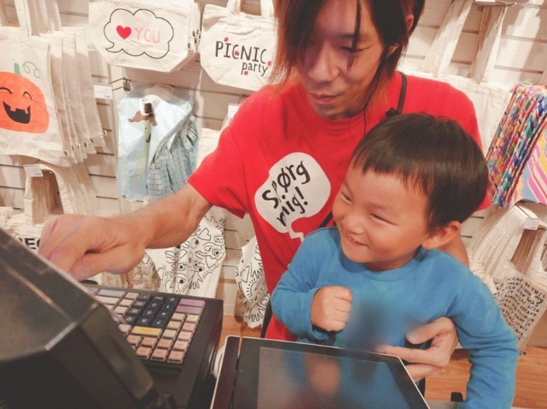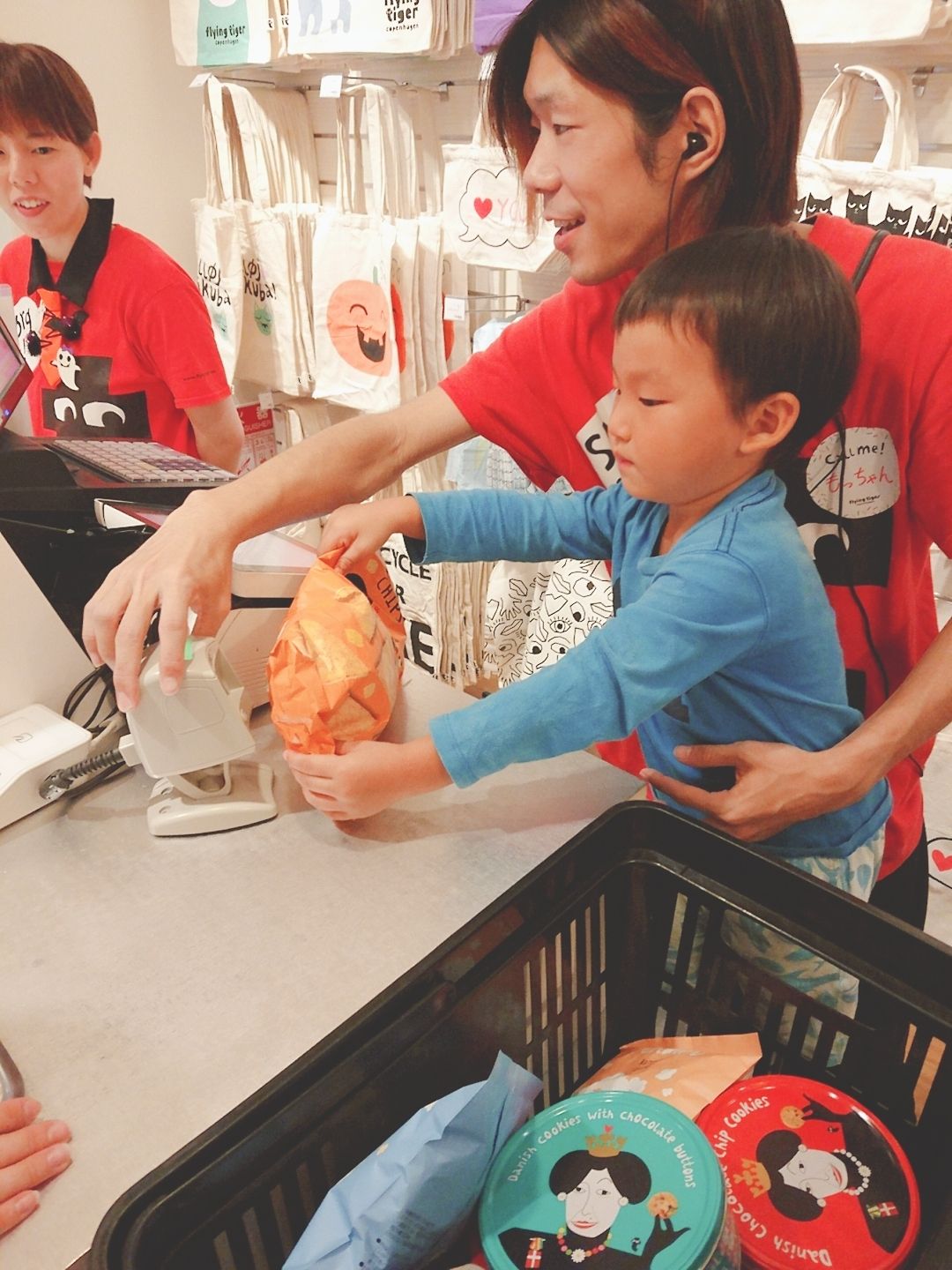 本物のレジを前に興味津々のはるとくん!!