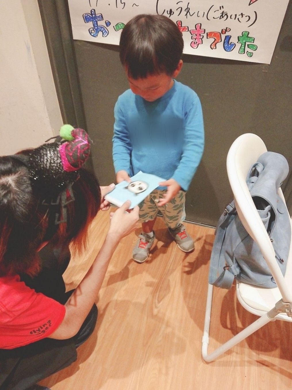 (普段見慣れない派手な仮装のスタッフにびっくりしちゃったかな…ごめんね( ; ω ; ))