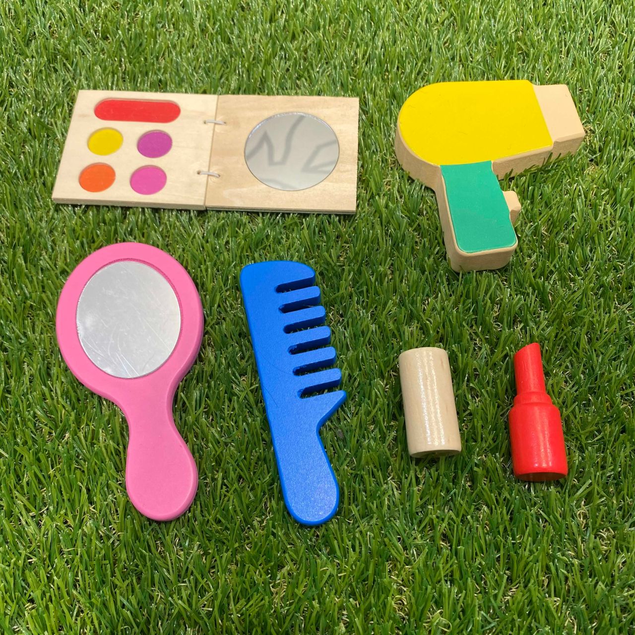 女の子はママのお化粧道具に興味津々です。