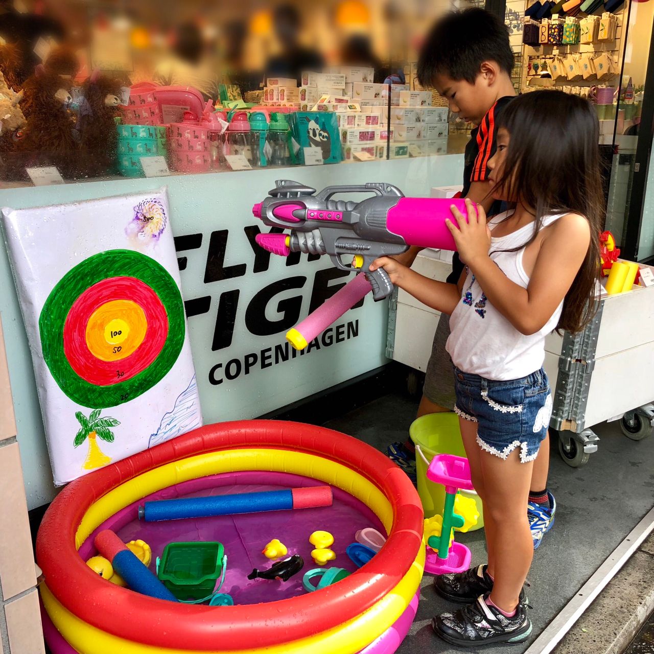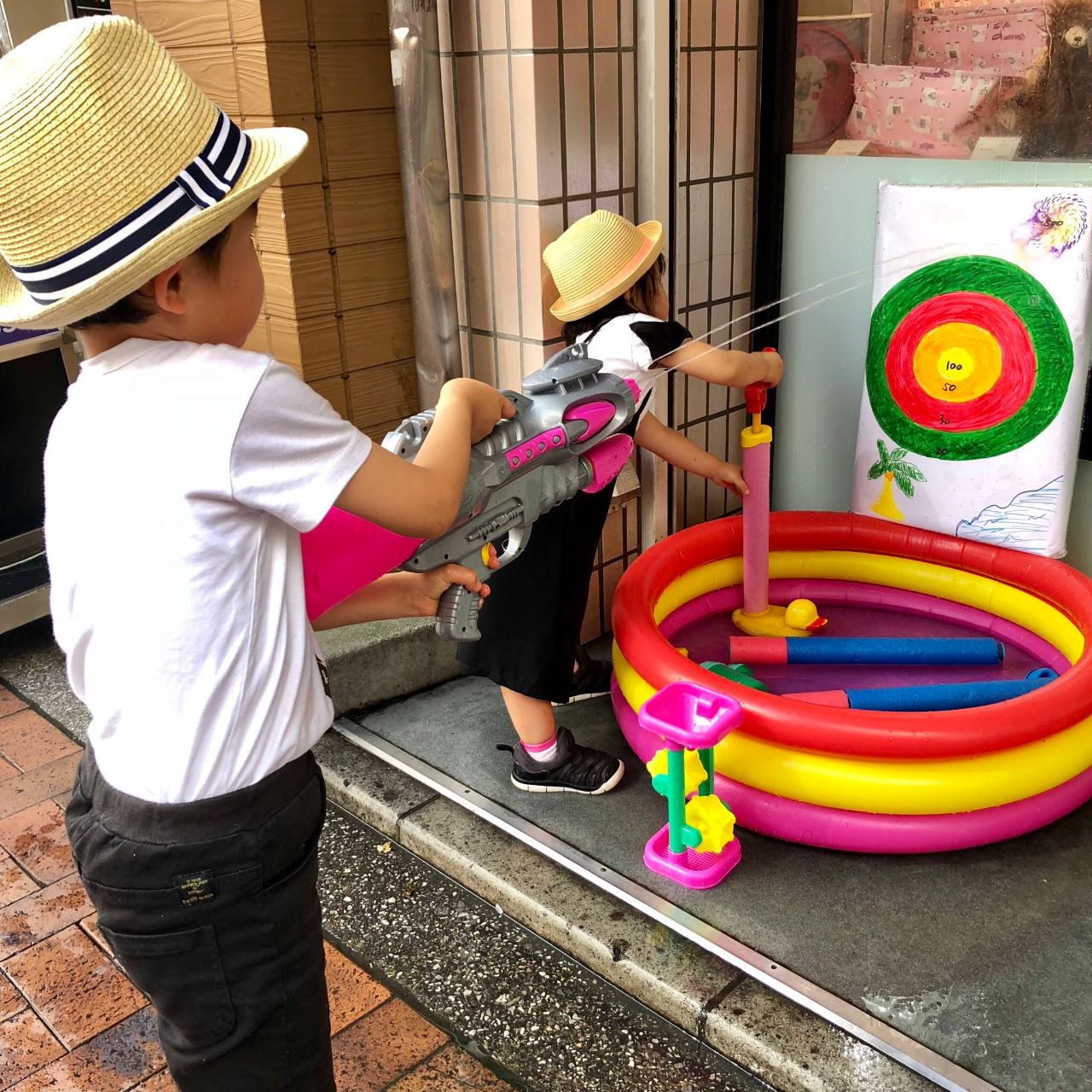 お店にある水鉄砲やバケツで遊べちゃいます☆