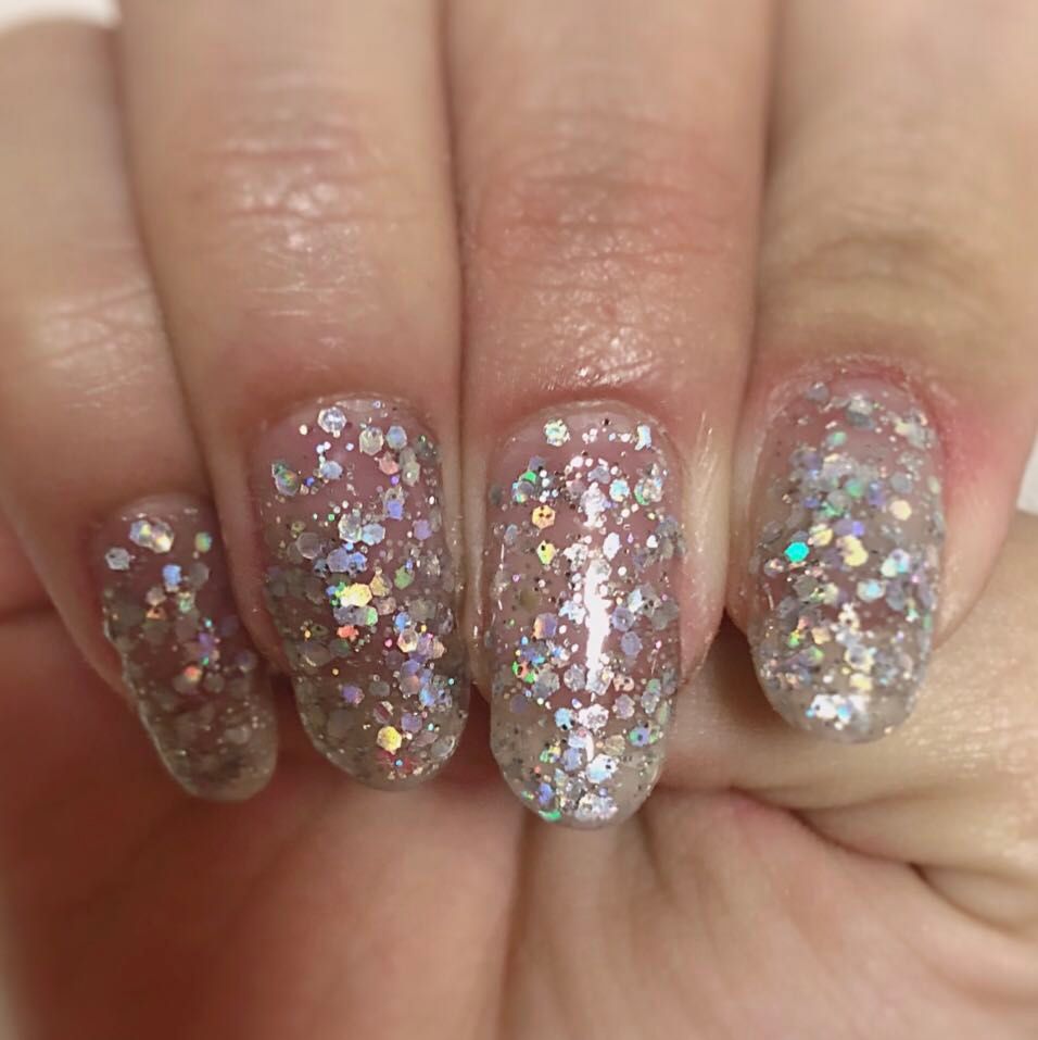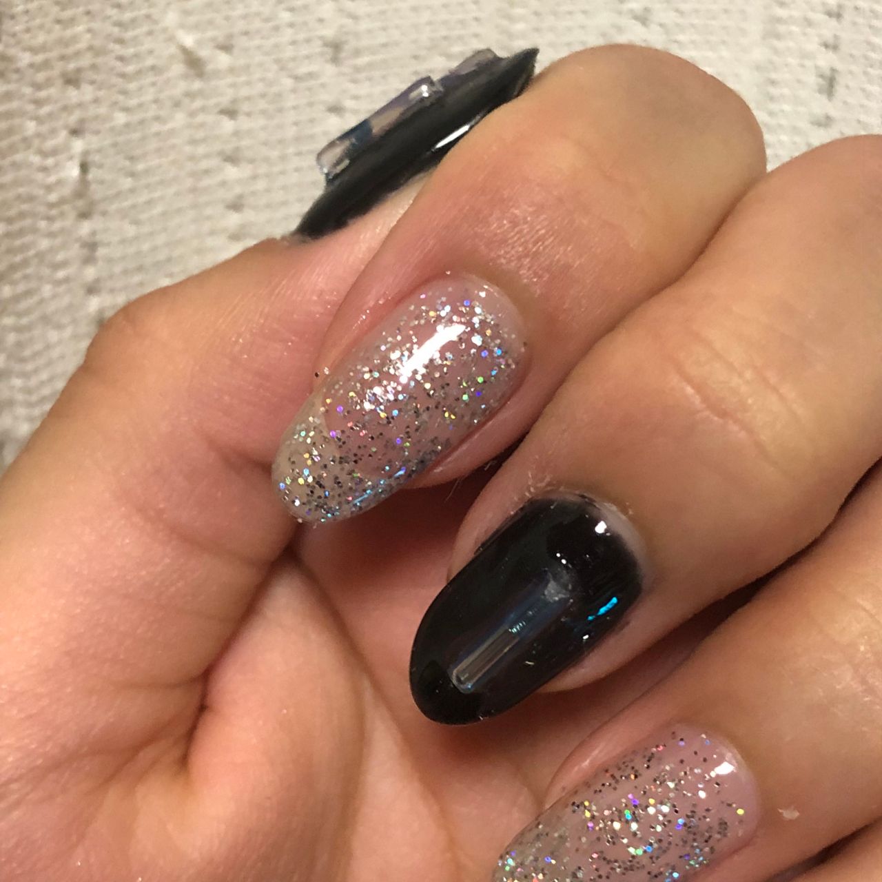 ③垂らしたトップコートの上から細かいグリッター(ラメ)を適量入れ混ぜます
