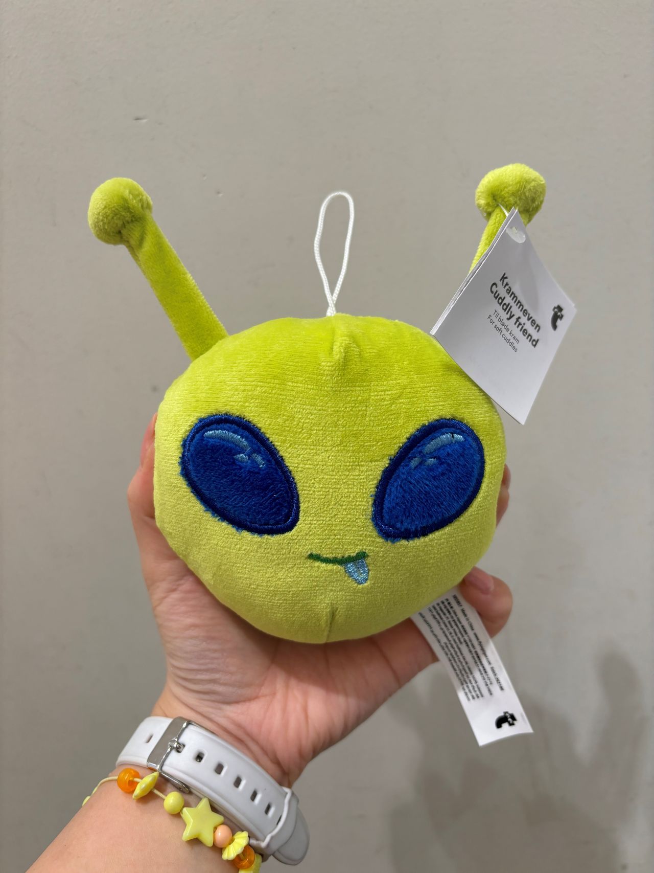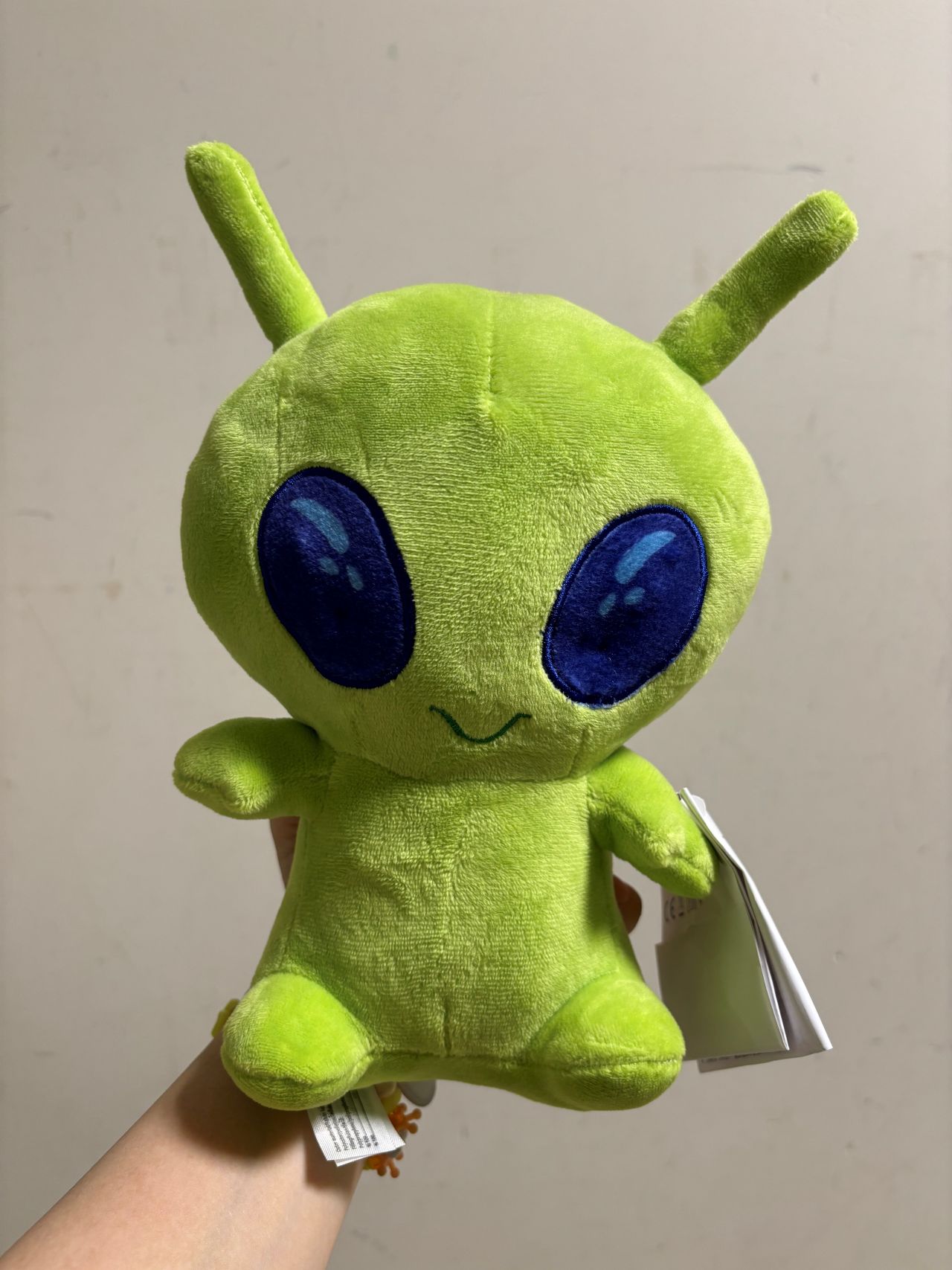 手のひらでつかめるほどの大きさのエイリアンのぬいぐるみ