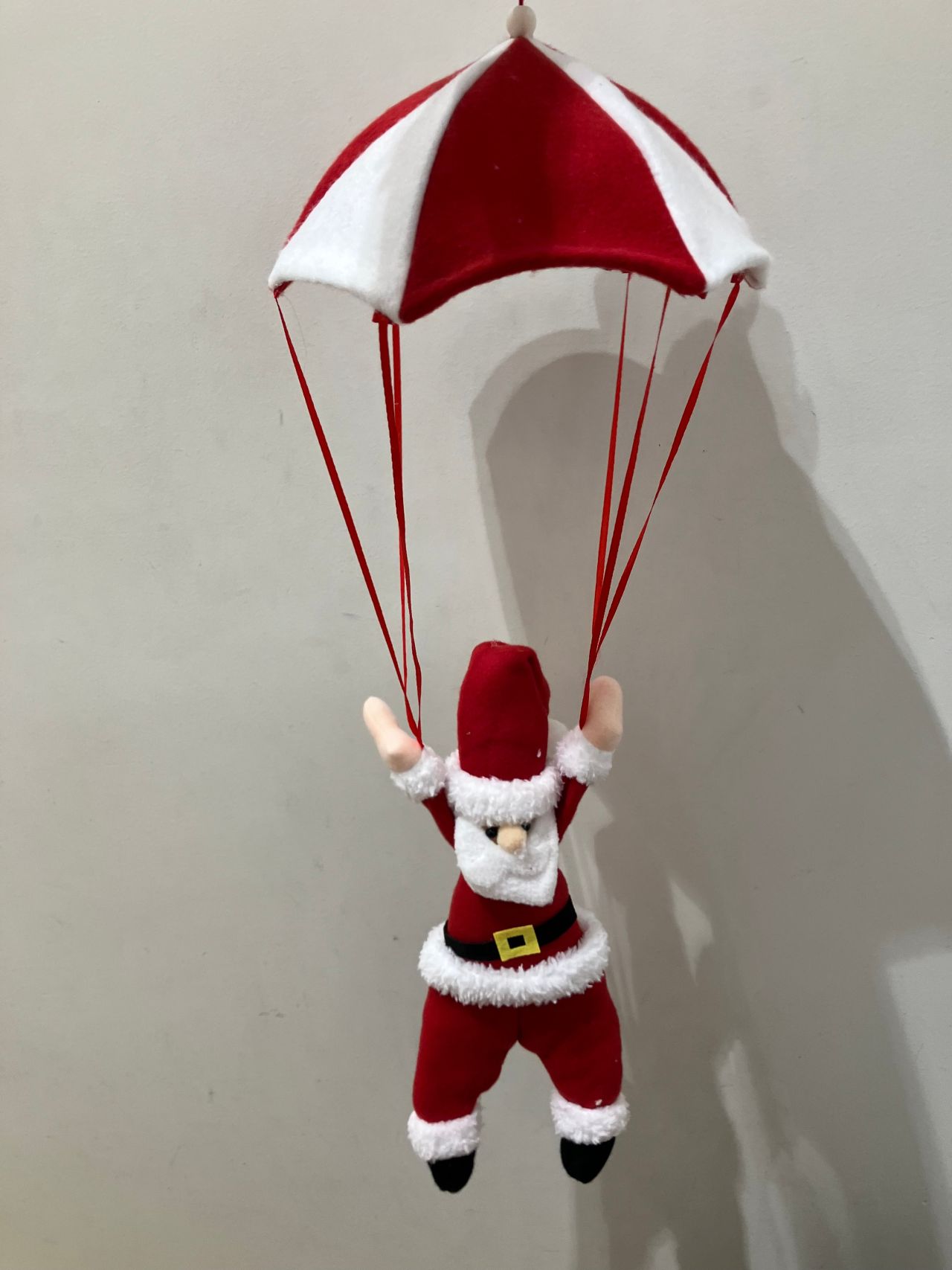 パラシュートでまさに今、舞い降りてくる可愛いサンタさん