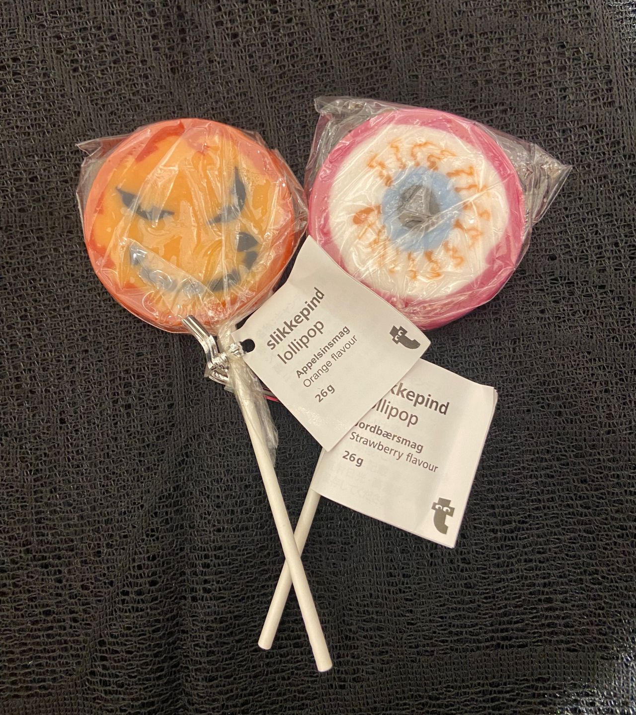 パンプキン柄がオレンジ味で目玉の柄はストロベリー味です!