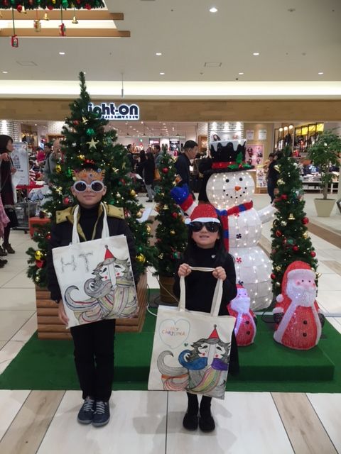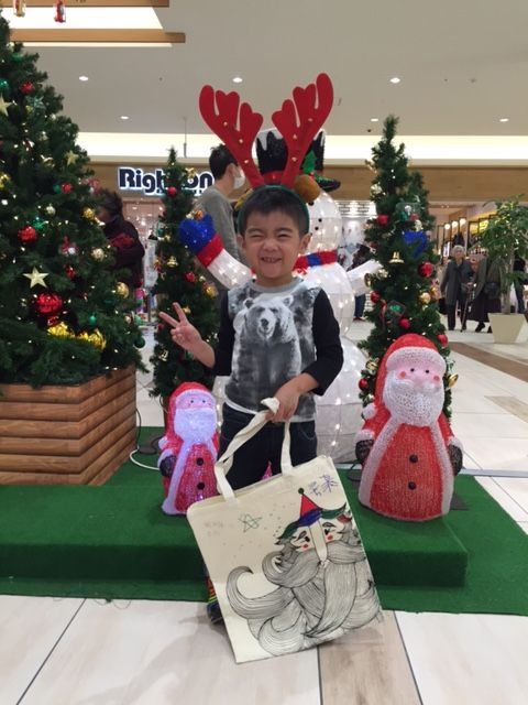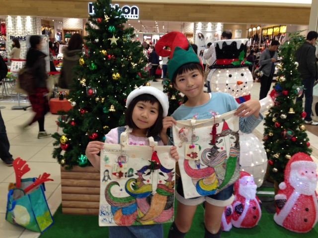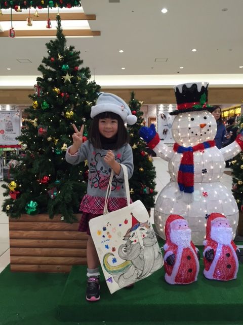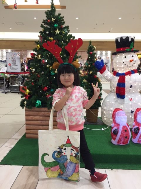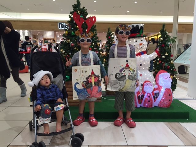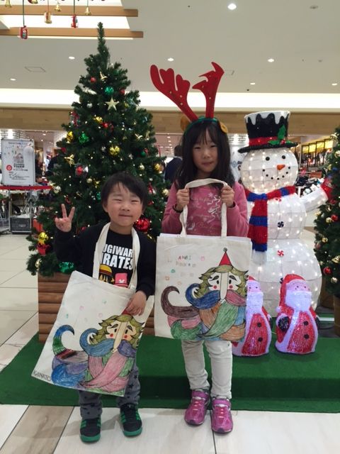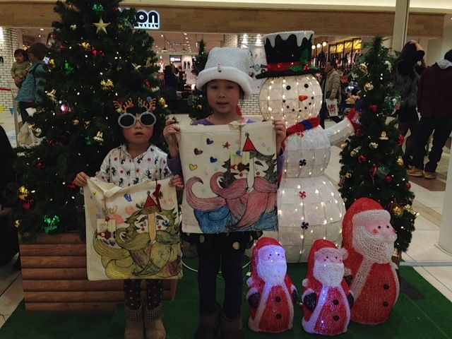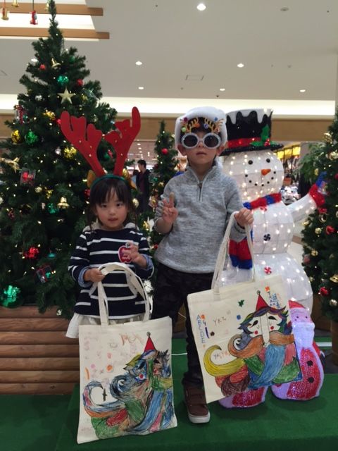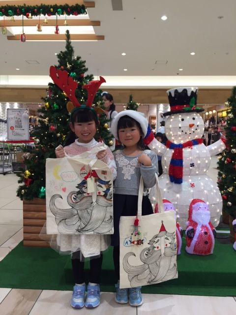 今回は、サンタの布バッグに色を塗ったりスタンプを押したり・・・