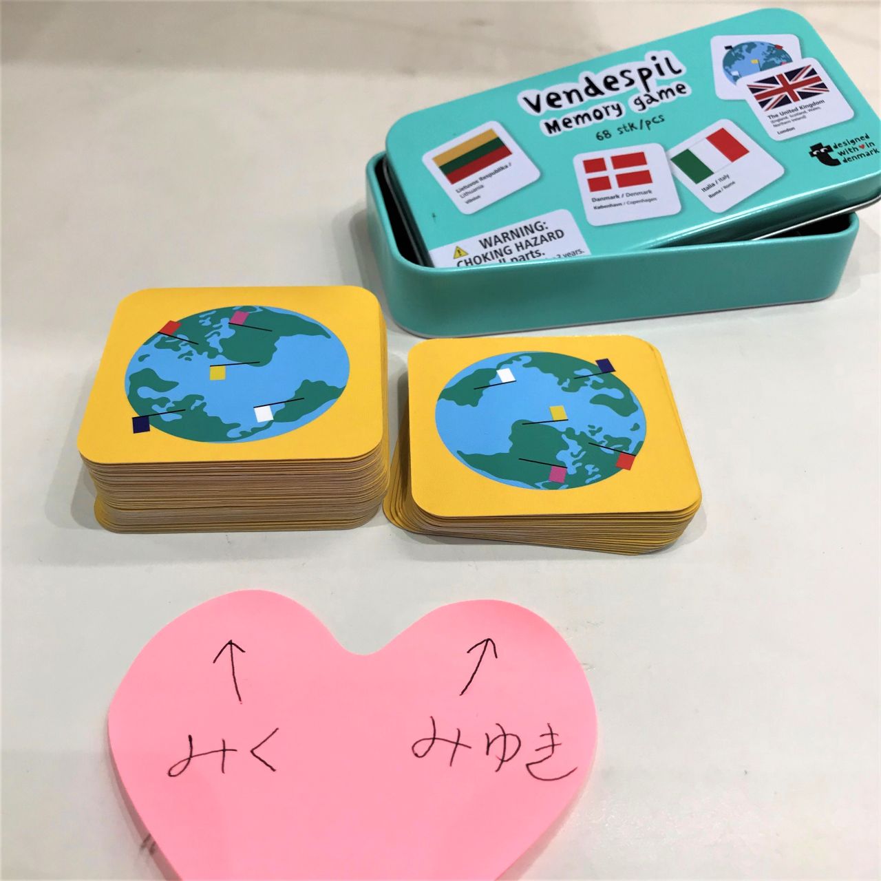 こちらのメモリーゲームには国旗が描かれており、勉強しながら遊べるのです!