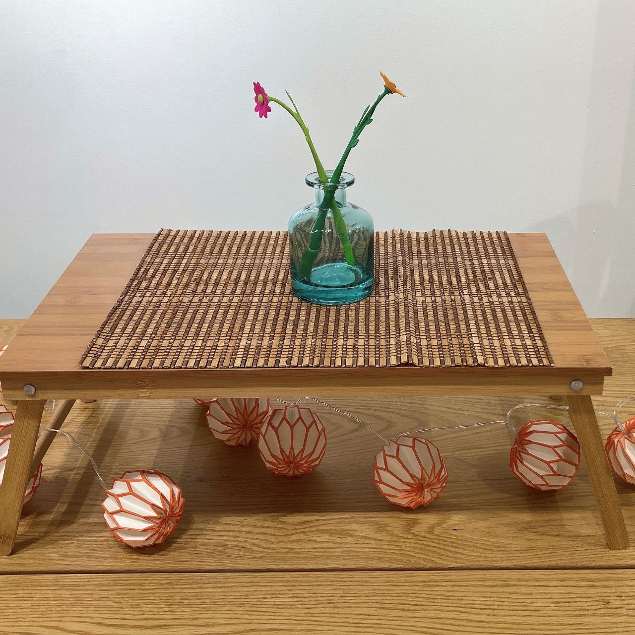 プレイスマットは竹素材ですが、色味が明るすぎないことで、秋っぽく見えます!