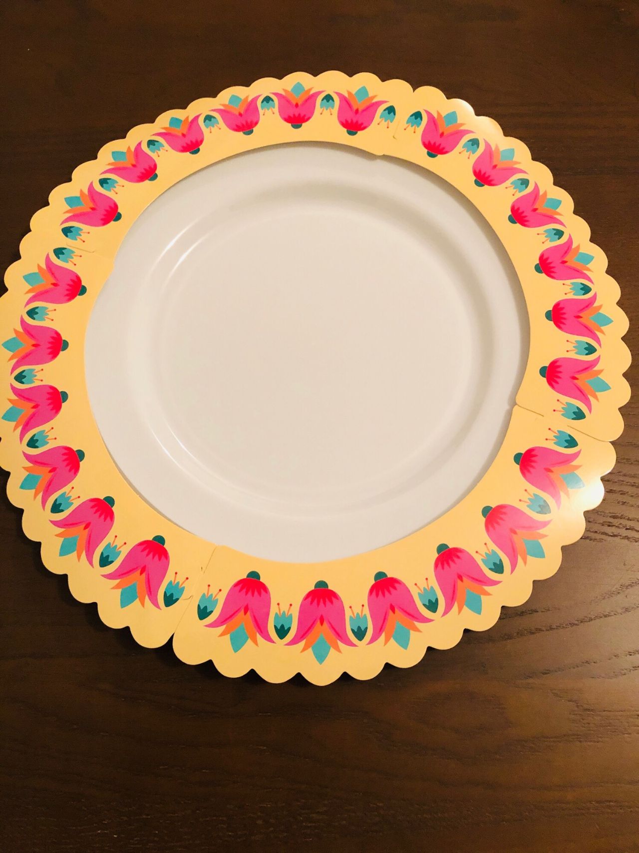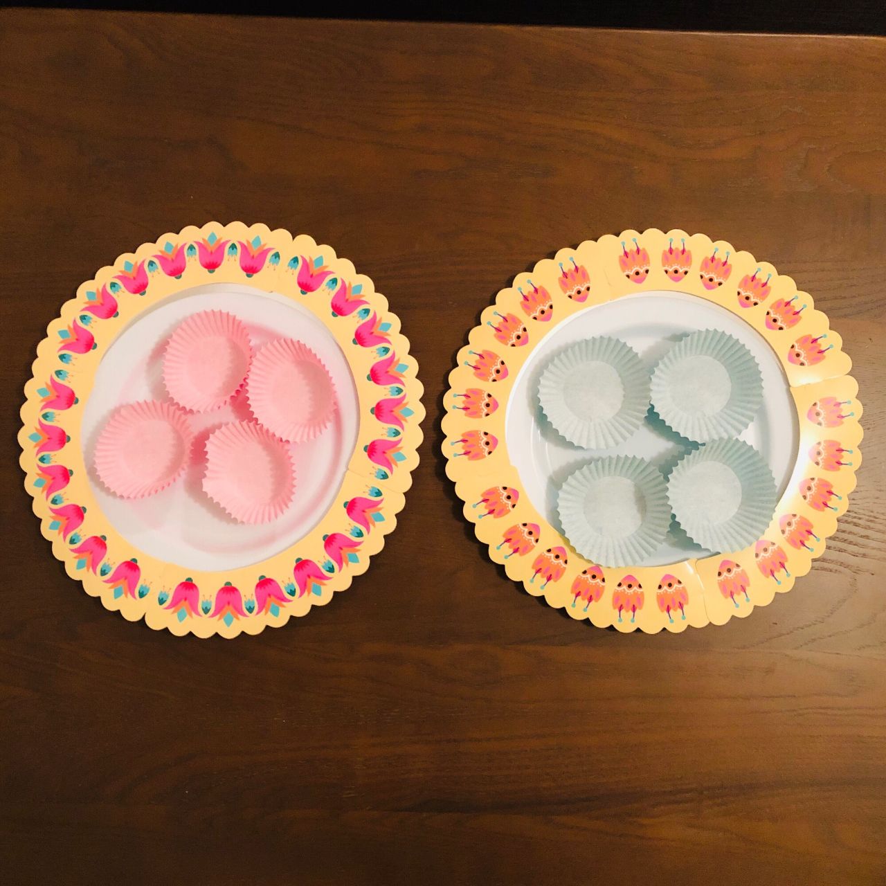 ベーキングカップに入ってるかわいい柄の外枠を4枚組み合わせプレートにのせます。←テープで貼るとズレないですよ!