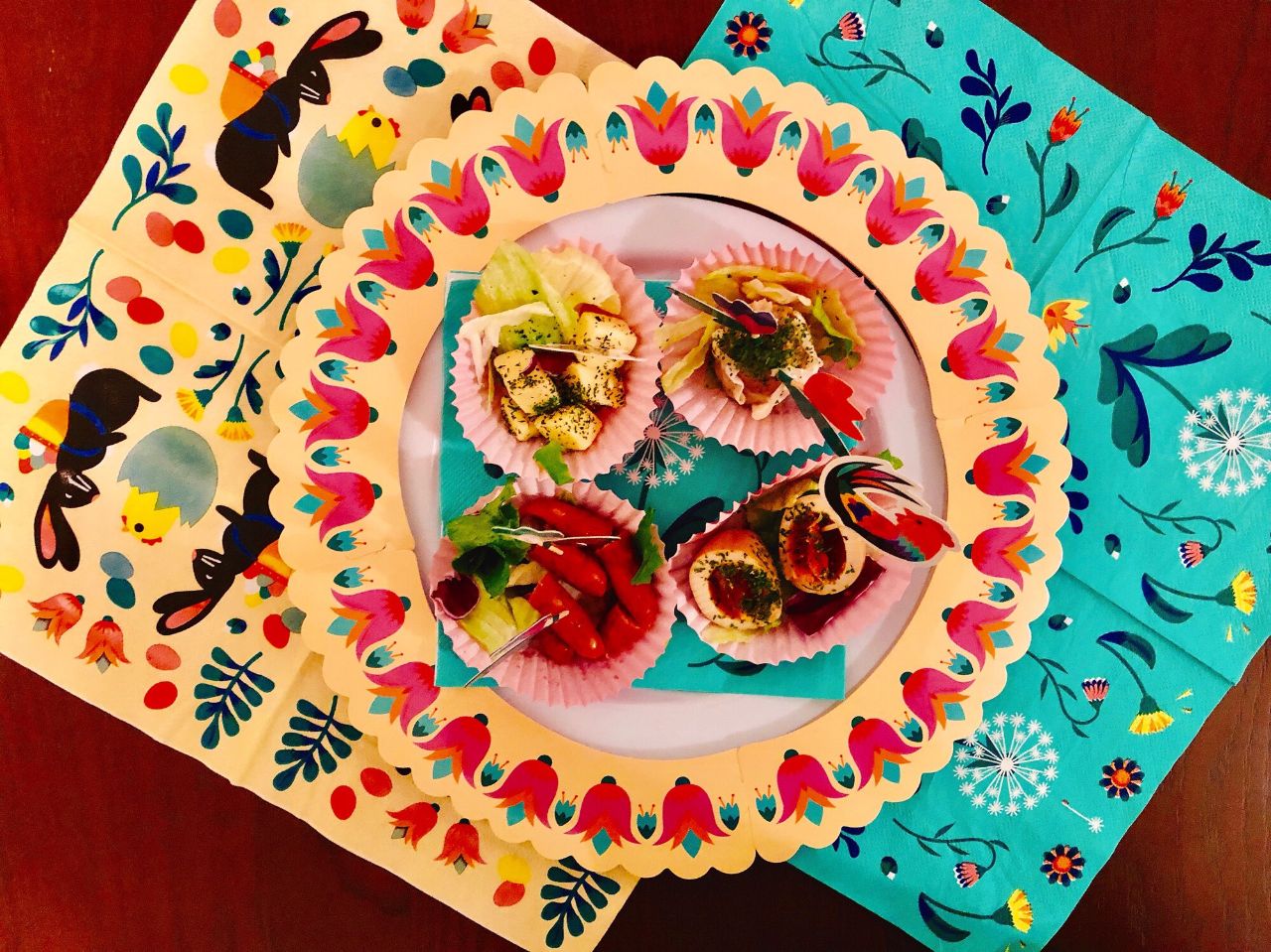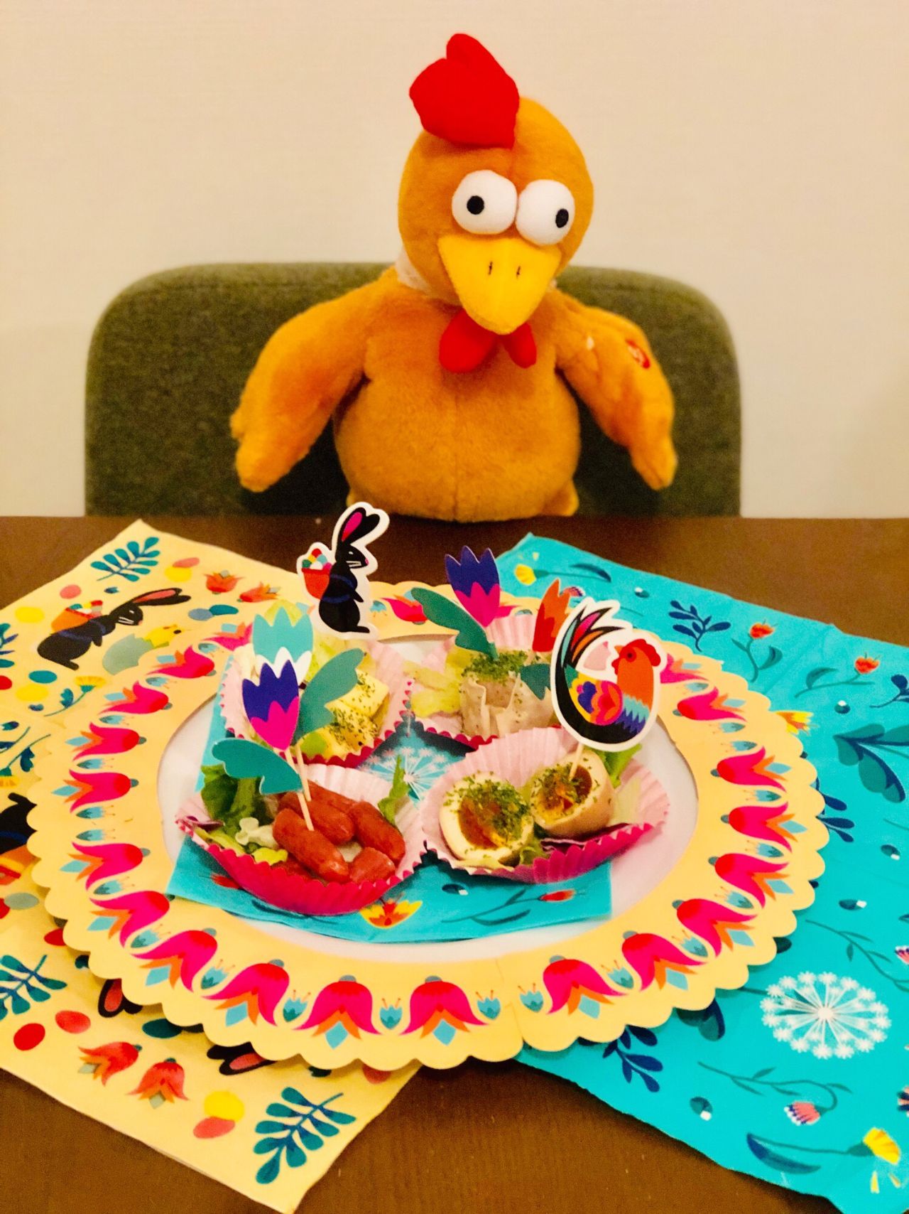 イースターにちなんだ卵料理やおつまみをのせて、ピックをさしたら、、