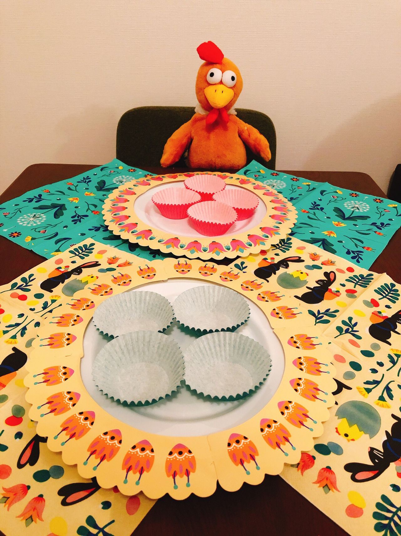 ペーパーナプキンを並べて、プレートにカップをのせたらもう完成間近♪