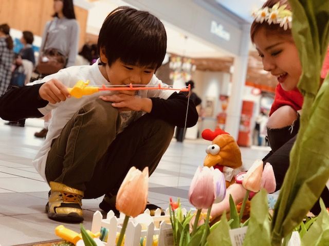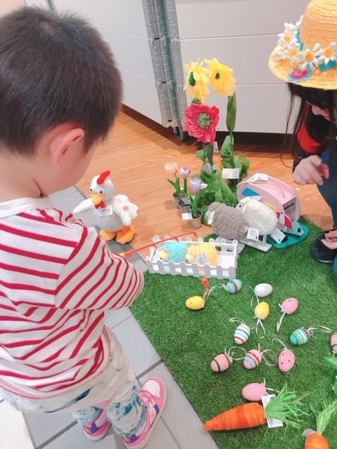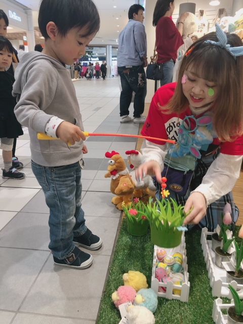 1.イースターエッグを釣竿を使い、お花の可愛いバスケットにいれます♪