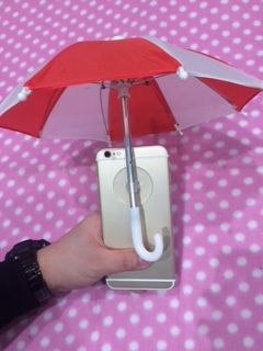 (こちらのスマートフォン用アンブレラは完全防水機能は無く、ジョークアイテムです。雨天でのご使用はお控えください。。)
