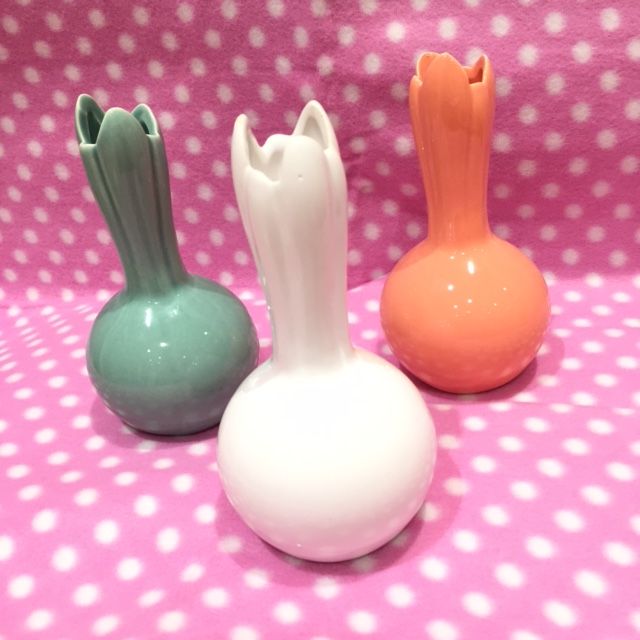 ちなみにチューリップの球根に芽がはえたような花瓶は全部で3色。