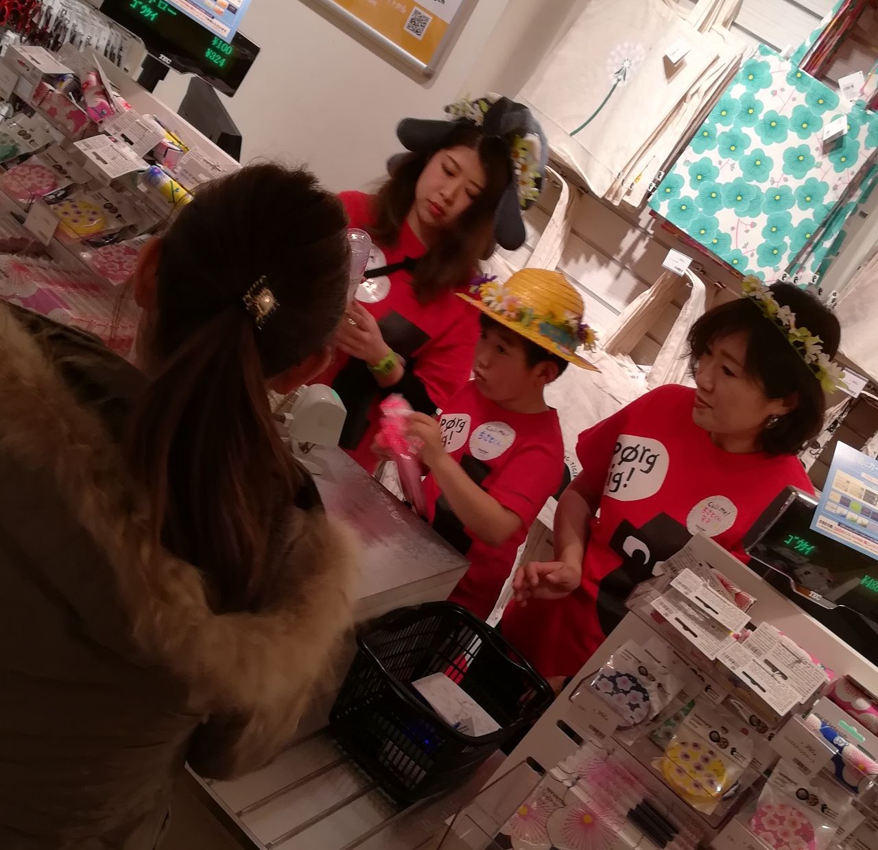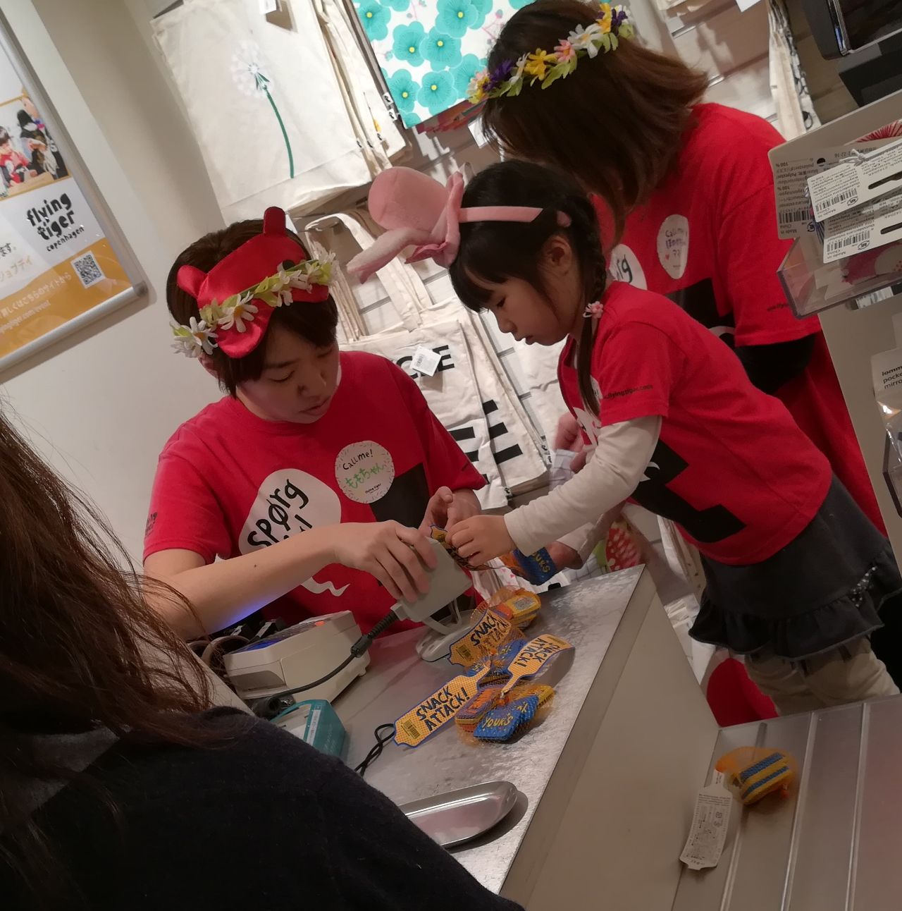レジはお母さんが見守る中、真剣に取り組んでくれました。