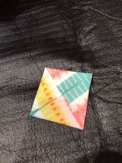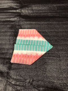 裏返して、小さいほうの三角をもう一つの三角と平行になるように折る。