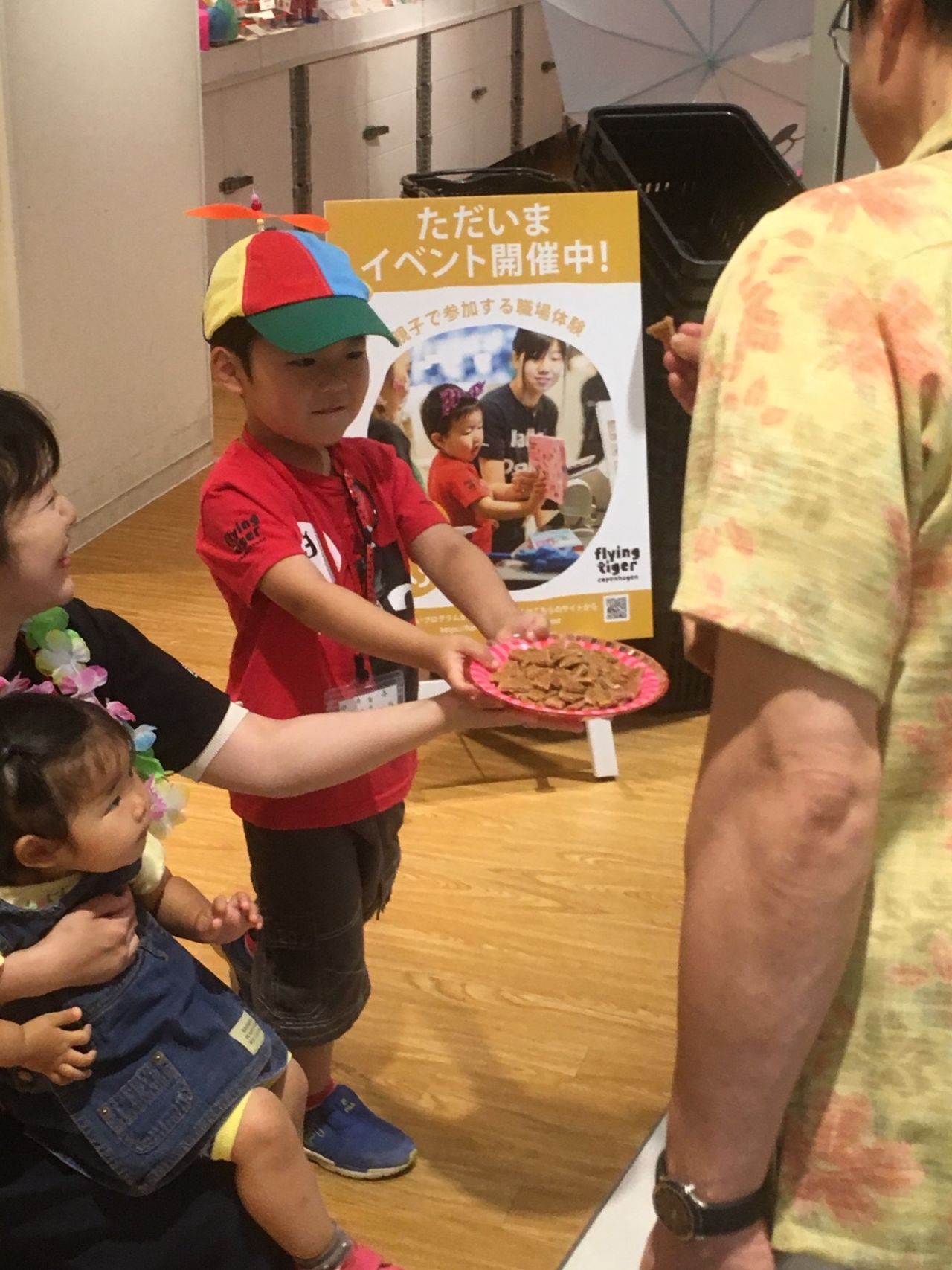 ①店頭でお菓子のサンプリング☺
