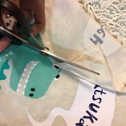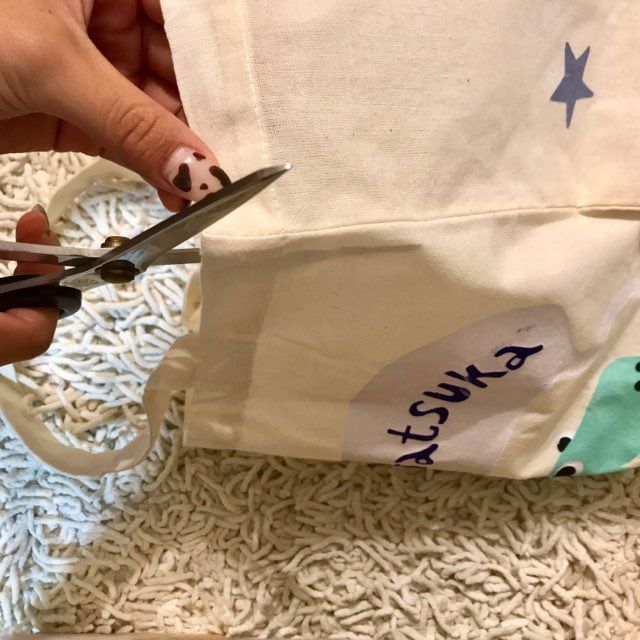 ①まず、トートバッグを半分に切り、2枚の布にします✄